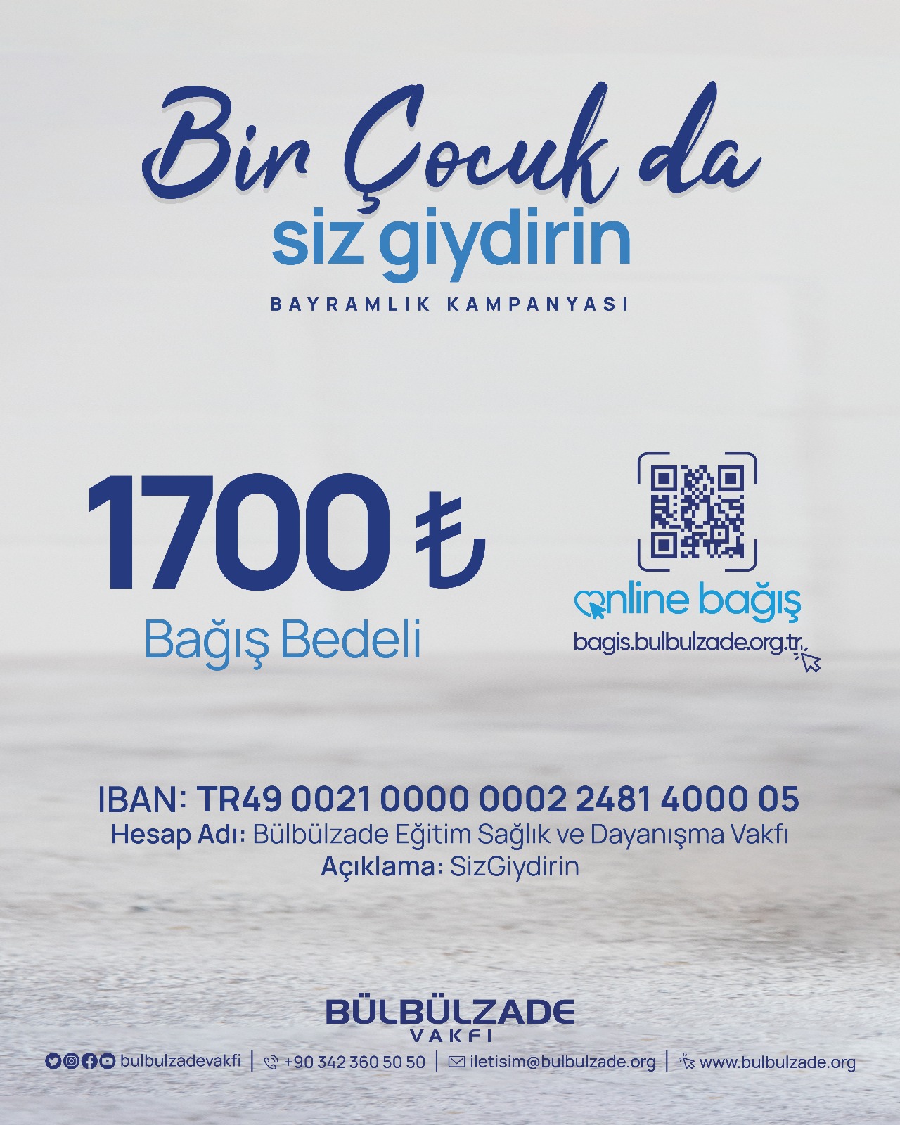 بصفتنا مؤسسة بلبلزادة، يستمر مشروعنا "ألبس طفلاً"، الذي ننفذه للأسر المحتاجة كل عام خلال شهر رمضان، هذا العام.