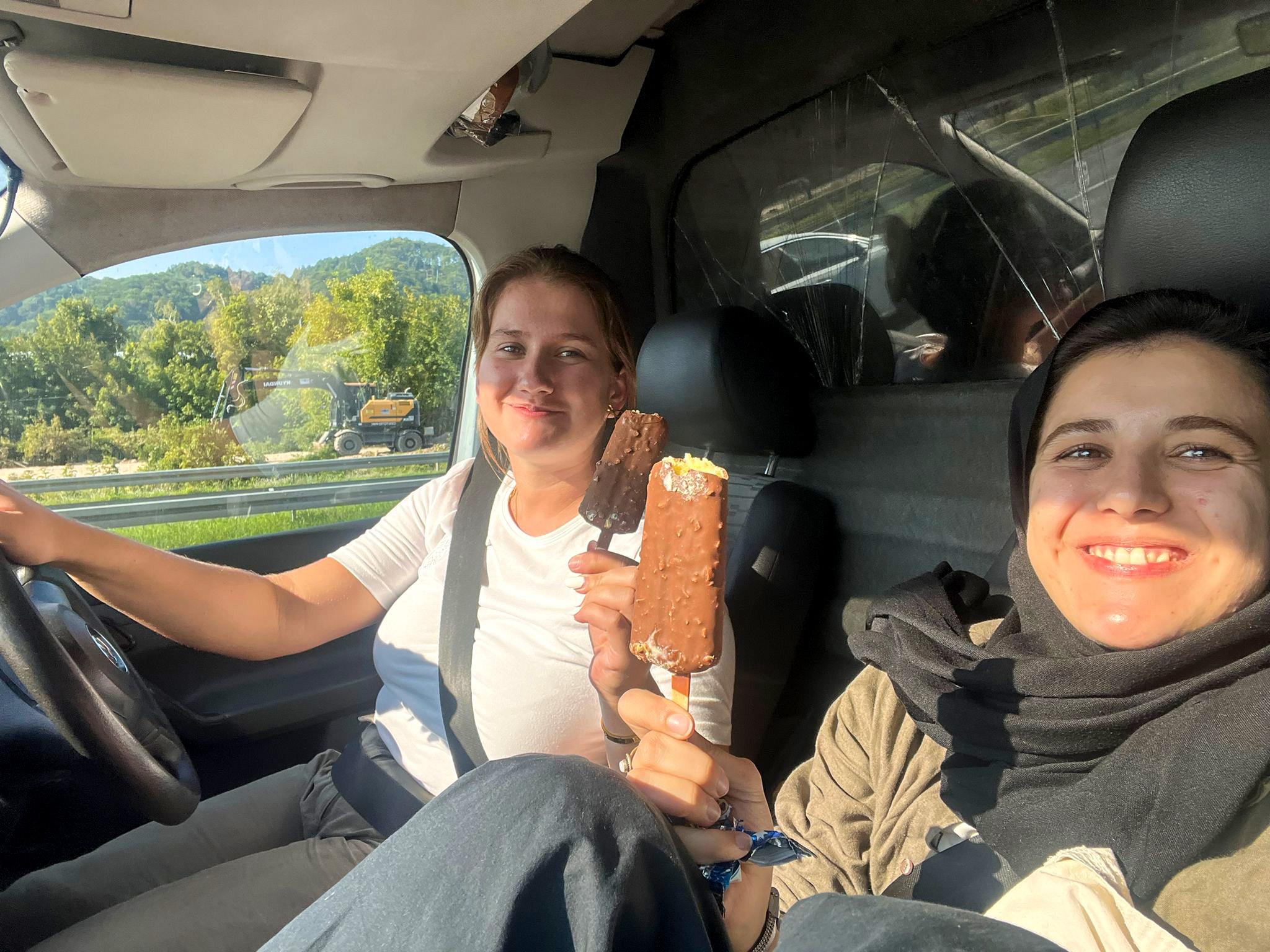 كل يوم في السابعة صباحًا، كنّا نبدأ يومنا في مطبخ المركز مع ستة متطوعين وموظفين، نُحضّر الوجبات لتوزيعها على المحتاجين — وعلى المسنين غير القادرين على الطبخ — في القرى والمدن المجاورة. الخروج للتوزيع مع النساء الخمس المسؤولات عن كل مراحل تحضير الوجبات وتوزيعها كان أحبّ ما لديّ. رغم الطرق المتعرّجة وقيادة الفتيات الجامحة التي كانت تثير جنوني. ورغم كل محاولاتي المتفائلة لأن تنتهي هذه الرحلات خلال ساعات قليلة وأنا منهكة تمامًا. لأن عملية التوزيع تعني رحلة سيارة شبه متواصلة من التاسعة صباحًا حتى الخامسة مساءً، مليئة بالحديث، وأغاني الراديو، وزيارات لعشرات البيوت. مع أمينة وأميلا، لا نكتفي بتسليم الطعام. نلتقط الأدوية التي طُلِبت في الزيارة السابقة. ومعًا، تبعثان الحياة في البيوت التي نزورها: ضحك، مداعبات، مزاح، بوريك يُفتح بسرعة على أقمشة مرتجلة، حلوى الهورماشيتسا. نذهب للتسوّق — نشتري الكمثرى، والبسكويت، ونسكافيه، والعنب، وسائل غسل الصحون، والكولونيا. كأن هذه الأشياء مخصّصة لوجبات صاحب البيت المسن نفسه. إنها ضيافات تُحضّر لزائرين لا يأتون ولا يذهبون. لا يوجد زوّار، ومع ذلك فالبيت مكتمل من كل ناحية. أخيرًا، أنا داخل تلك البيوت التي كنت أراقبها. أنا في الداخل. بل أكثر من ذلك — أنا في كل زاوية، بالمكنسة في يدي، تحت السجاد والأرائك، في كل ركن. أسأل كل ما يخطر ببالي. وحين يكون ما يجوعون إليه أكثر من الطعام هو الحضور الإنساني، والحديث، وأن يُسألوا عن حالهم، فإنهم يحكون كل شيء بلا تحفظ. يتحدثون عن أبنائهم. عن أي بقاع من العالم ذهبوا إليها. عن عدد السنوات التي مضت منذ آخر مرة رأوا فيها أحفادهم، الذين تملأ صورهم جدران البيت. يشتكون من آلام الركبتين، من الوحدة. من الكوابيس التي ازدادت مع السنين، من شبح الحرب، من أرواح أبنائهم المتوفين التي تزورهم. وأنا أواصل فتح هذه القصص في السيارة مع الفتيات، نصل دائمًا بطريقة ما إلى قصصنا نحن. كثيرًا ما كنّا نوقف السيارة على جانب الطريق لتهدئة حدّة الحديث أو لمسح دموعنا.