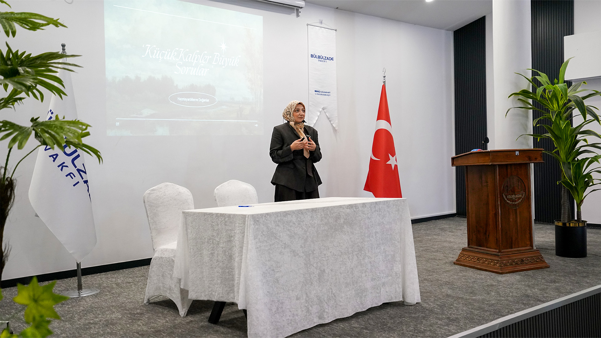 The second presentation was delivered by Clinical Psychologist Merve Doğanlar. She explained how the concept of faith is formed and how children make sense of it. She particularly focused on the questions that children ask their parents. Doğanlar also discussed the brain-based perception of reality, sharing detailed information about the neuropsychological development of children aged 4 to 12.