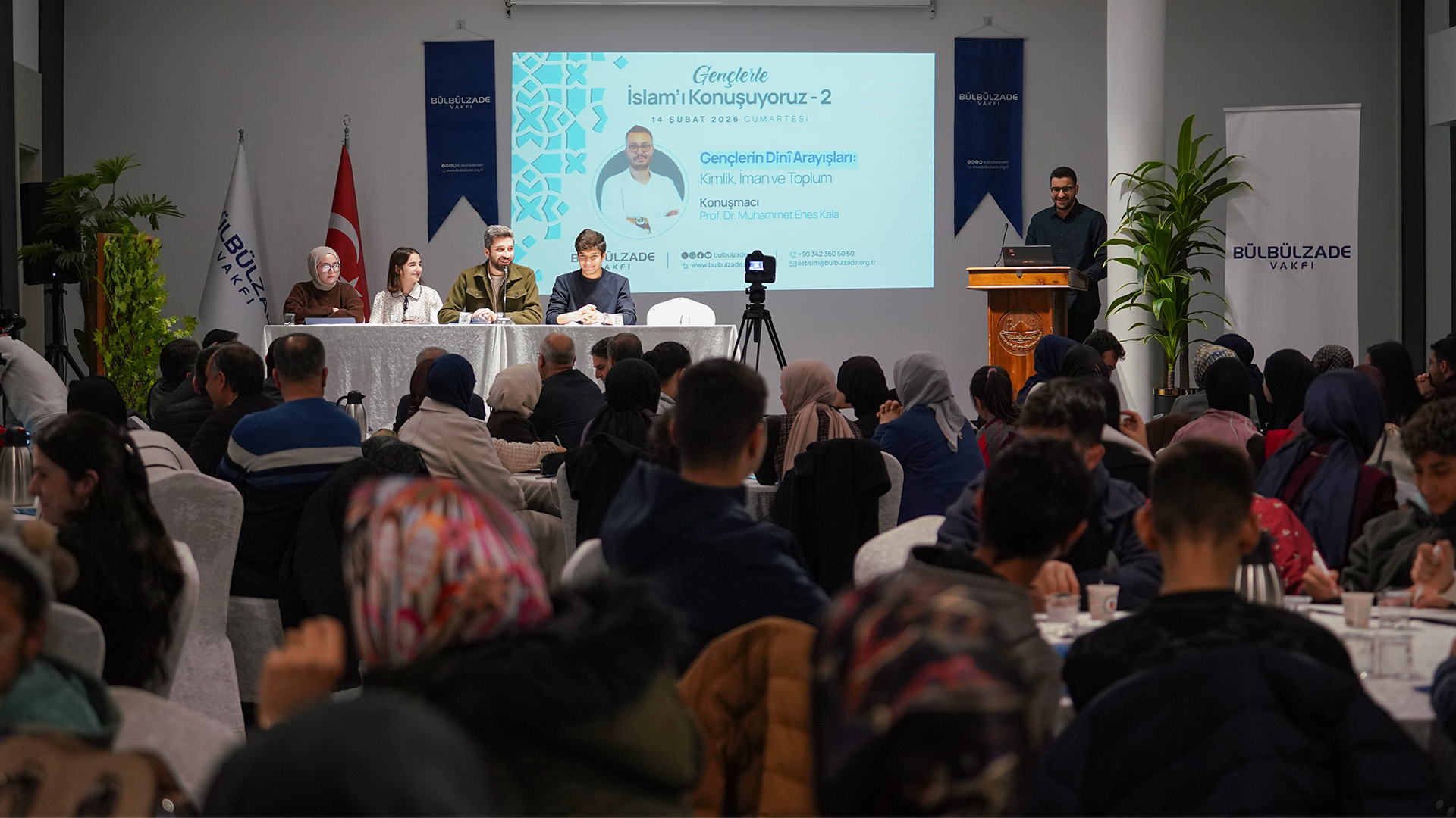 Bülbülzade Vakfı Eğitim ve Öğretmen Birimi öncülüğünde, gençlerin inanç dünyasını anlamak, sorunlarına çözüm üretmek ve onlarla sahih bir iletişim dili geliştirmek amacıyla düzenlediğimiz "Gençlerle İslam’ı Konuşuyoruz" çalıştay serisinin ikincisi, 14 Şubat 2026 Cumartesi günü Zade Life Otel Zeugma Salonunda gerçekleştirildi. "Gençlerin Dini Arayışları: Kimlik, İman ve Toplum" üst başlığıyla düzenlenen program, Kur’an-ı Kerim tilaveti, şiir dinletisi, öğrenci sunumları ve Prof. Dr. Muhammet Enes Kala’nın ufuk açıcı konferansı ile tamamlandı.