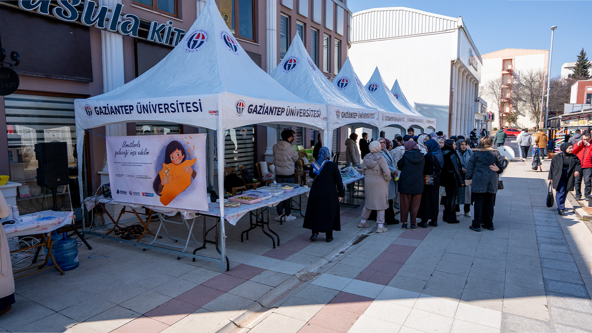 Bülbülzade Vakfı Mozaik Birimi ve Anadolu Öğrenci Birliği tarafından, Suriye'nin yeniden inşası sürecine katkı sağlamak amacıyla "Umutlarla Geleceği İnşa Edelim" başlıklı hayır çarşısı düzenlendi. Etkinlik, Gaziantep Üniversitesi çarşısında yer alan Pusula Kitabevi’nin önünde gerçekleşti ve üniversite öğrencilerinin yoğun ilgisiyle karşılandı.