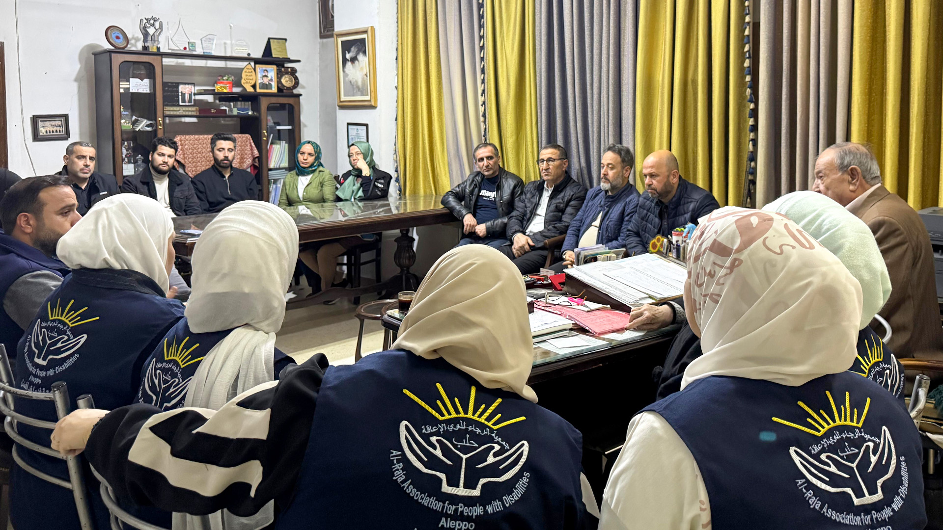 Ardından, Bülbülzade Vakfı yetkilileri ile Al-Raja Association for People with Disabilities Müdürü Adnan Babilli ve eğitimcileri bir oturum gerçekleştirdi. 6.000 yetim, öksüz ve engelli çocuğu himaye eden kuruluş, başta eğitim olmak üzere her çocukla özenle ilgilendiklerini belirtti. Oturum, işbirliği ve iyi dilek temennilerinin ardından sona erdi.
