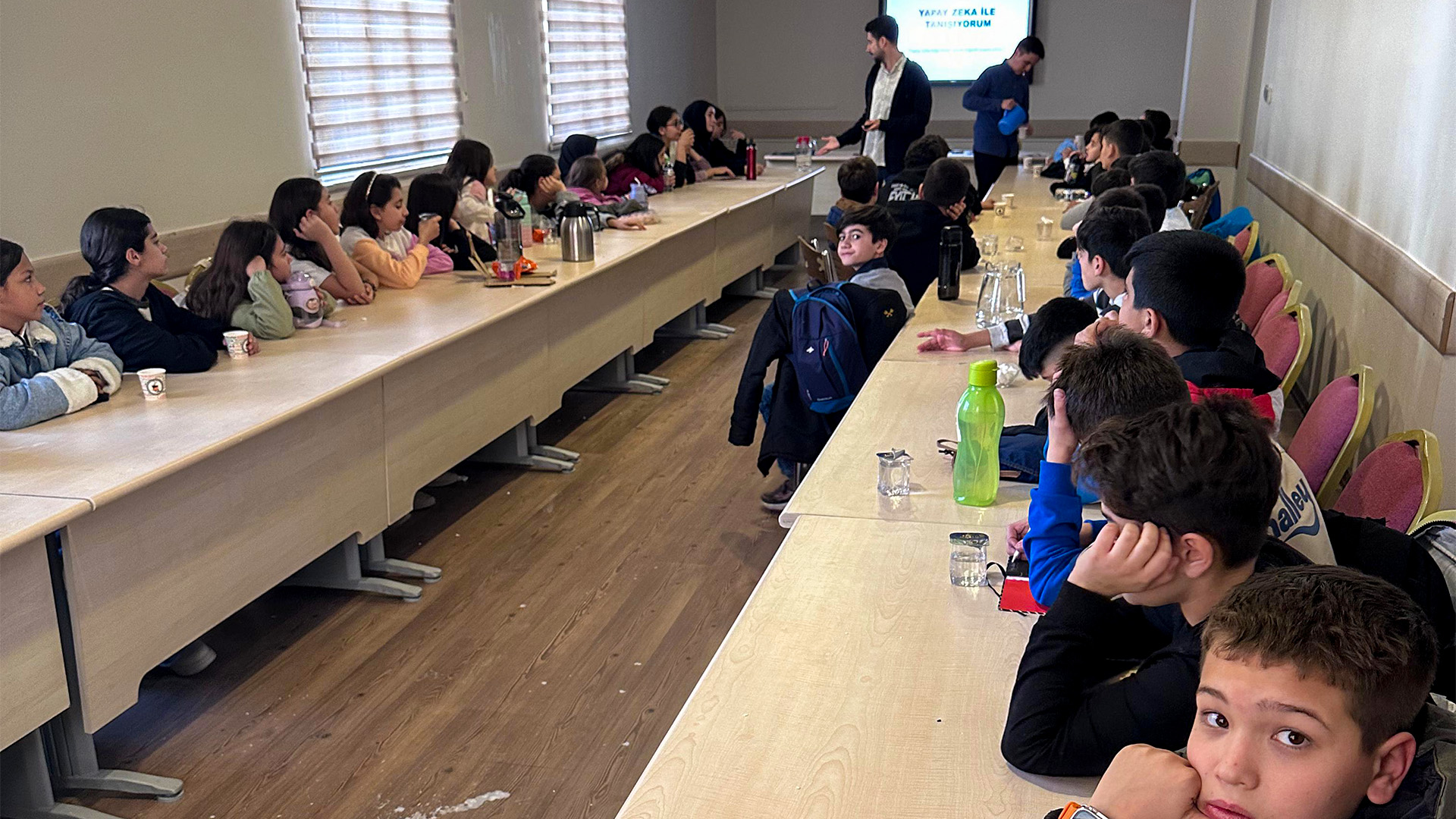 “Yapay Zeka ile Tanışıyorum” atölyesinde öğrenciler, eğitimcilerin yönlendirmeleri ile yapay zeka kullanarak görsel tasarımlar yaptılar.
