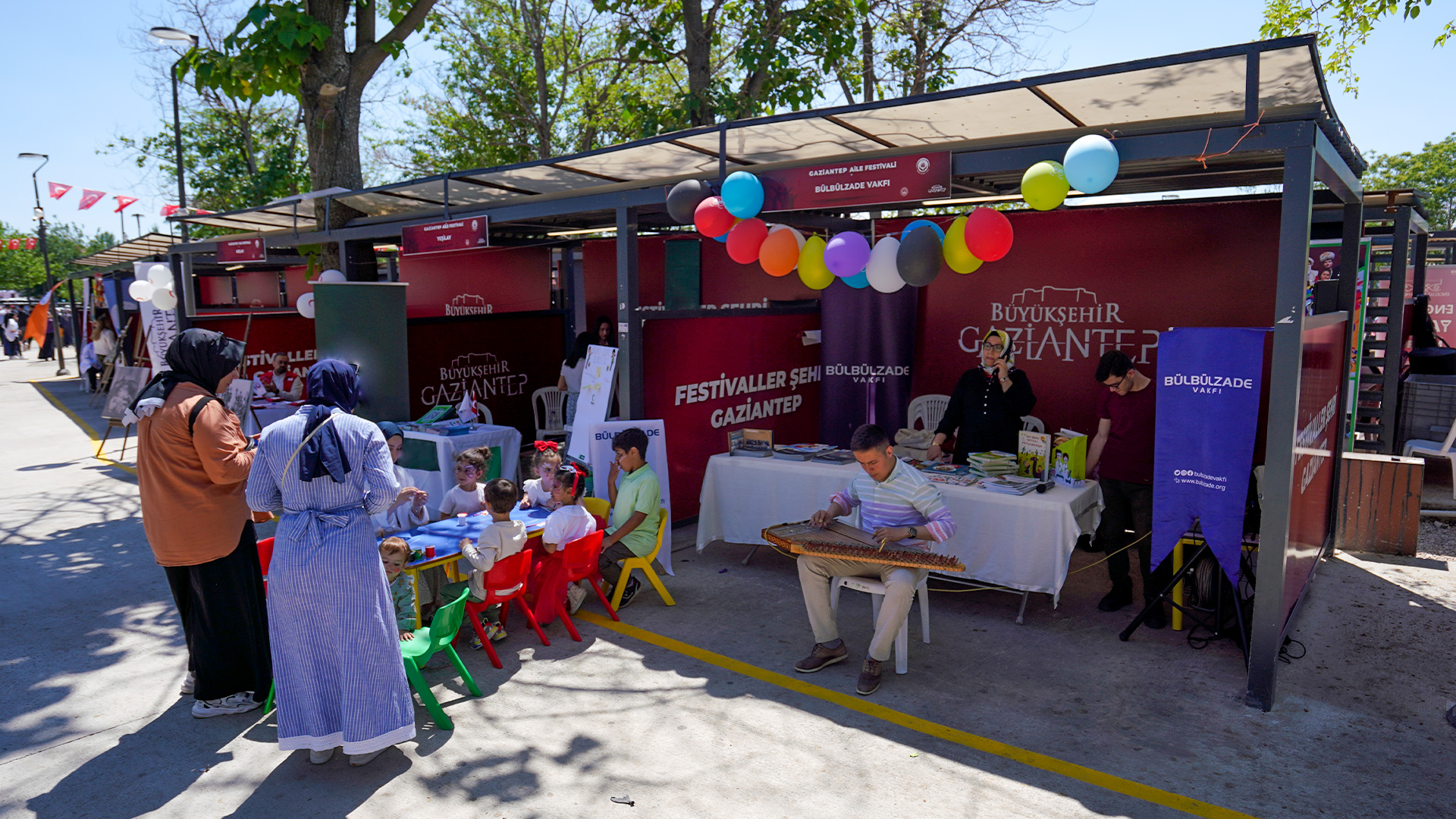 Gaziantep’ten çeşitli kamu ve yerel kuruluşlar ile sivil toplum kuruluşlarının katılım sağladığı açılışın ise Aile ve Sosyal Hizmetler Bakanı Sayın Mahinur Özdemir Göktaş’ın gerçekleştirdiği festivalde, aile temalı etkinlikler, müjdeler, çekilişler ve sürprizler yer aldı. Bülbülzade Vakfı standı ise sunduğu çeşitli etkinliklerle ziyaretçilerden yoğun ilgi gördü. “Boyalı Ellerden Filistin Bayrağı” etkinliği, eğlenceli yüz boyama ve akıl oyunları gibi çocuklara yönelik faaliyetlerin yanı sıra; alçı boyama, doğa, “Anne-Çocuk”, “Baba-Çocuk” ve “Renkli Tuvaller” atölyeleri ile aile bireylerinin birlikte kaliteli vakit geçirebilecekleri bir ortam oluşturuldu. Ayrıca “Benim Defterim” atölyesi ile çocuklara yazma sevgisi kazandırılması amaçlandı. Vakıf tarafından düzenlenen sportif etkinlikler, geleneksel çocuk oyunları ve canlı müzik dinletileri, ziyaretçilere keyifli anlar yaşattı.