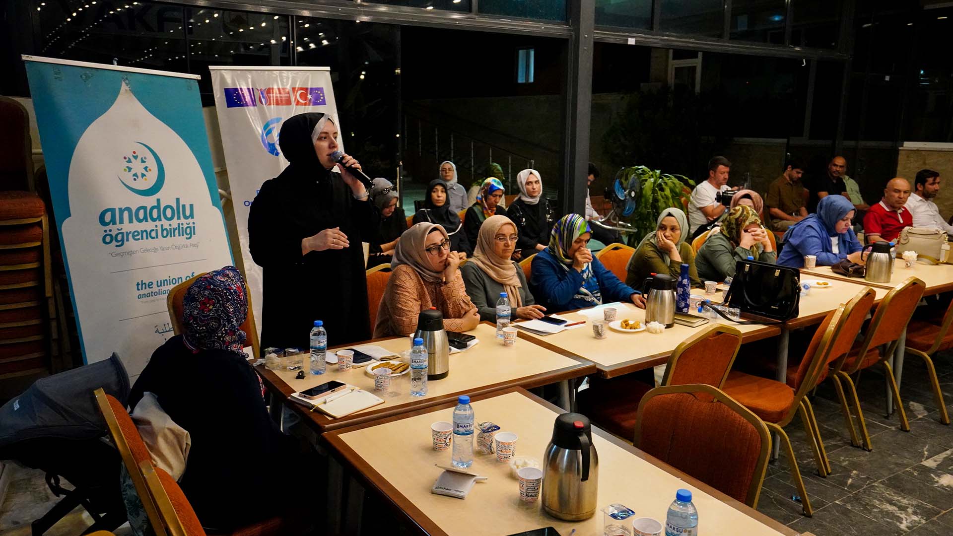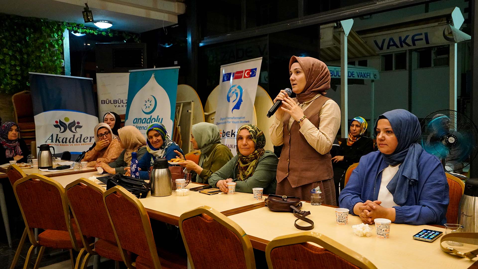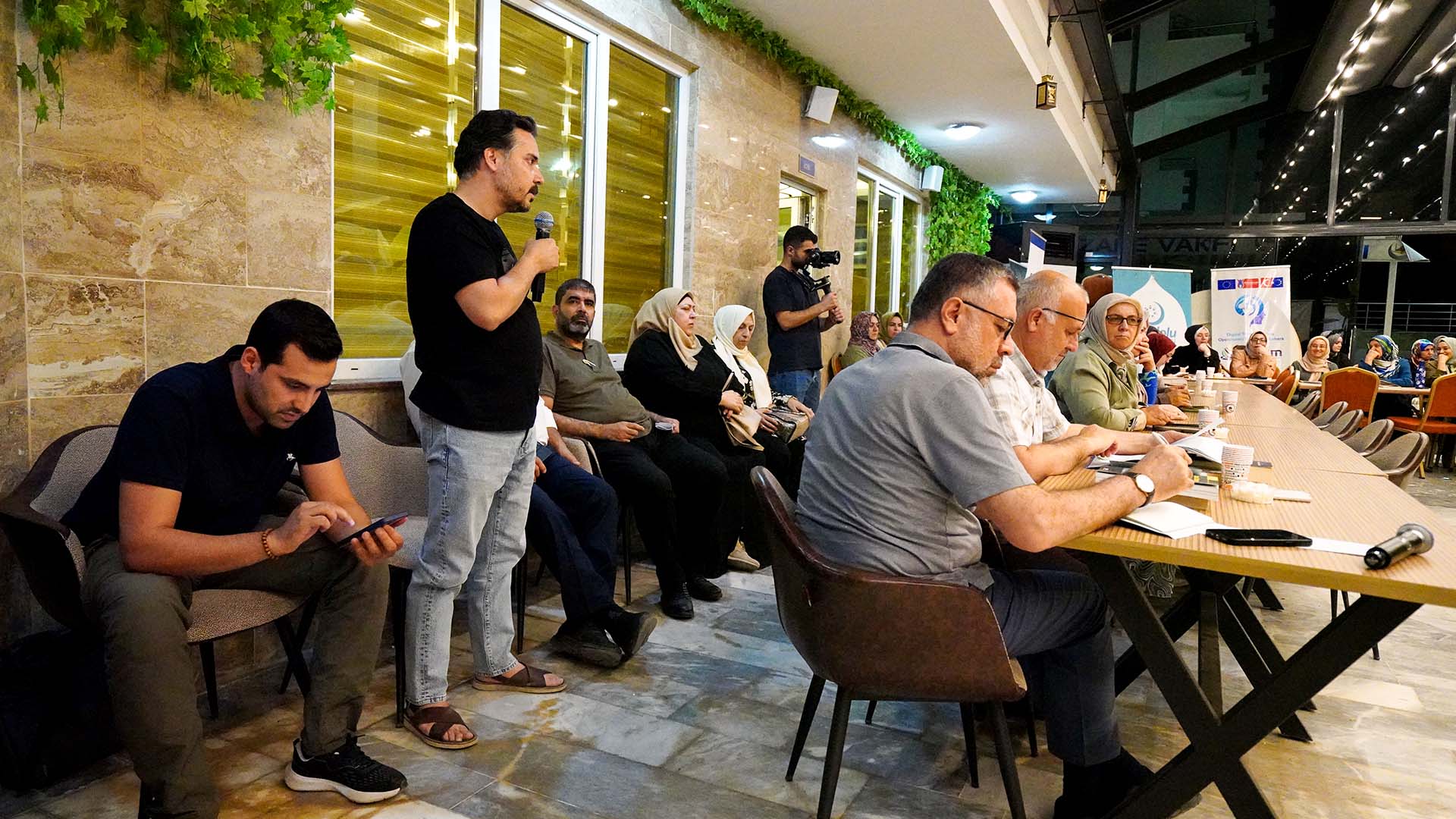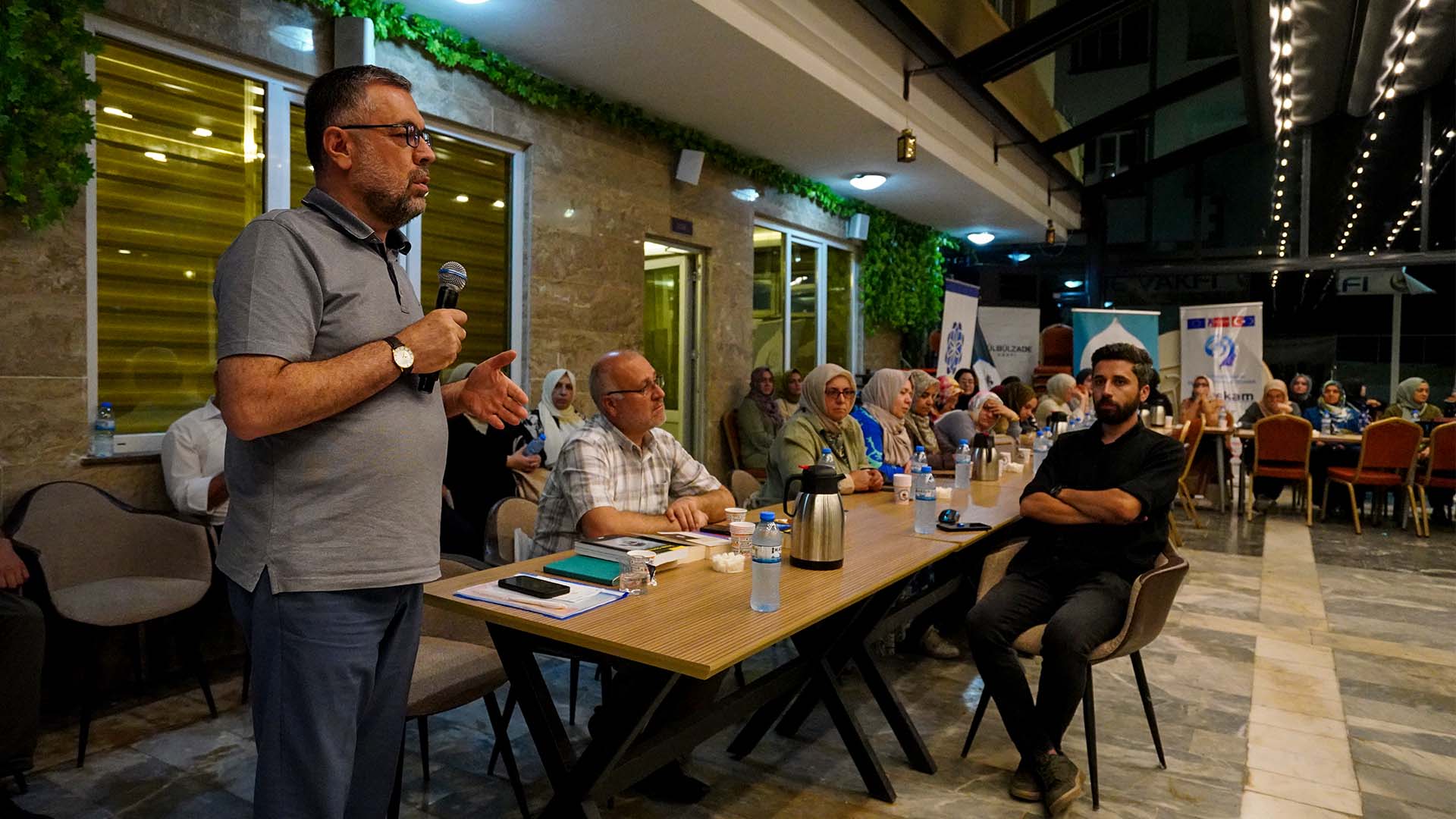 Dün akşam gerçekleştirilen toplantıda, vakıf bünyesinde profesyonel olarak hizmet veren Sanat Merkezi, Spor Merkezi, Medya Merkezi, Kız Konaklama Merkezi, Göçmen Hizmetleri Merkezi ve Pusula Kitap Evi’nin işleyen süreçleri hakkında brifingler verildi.