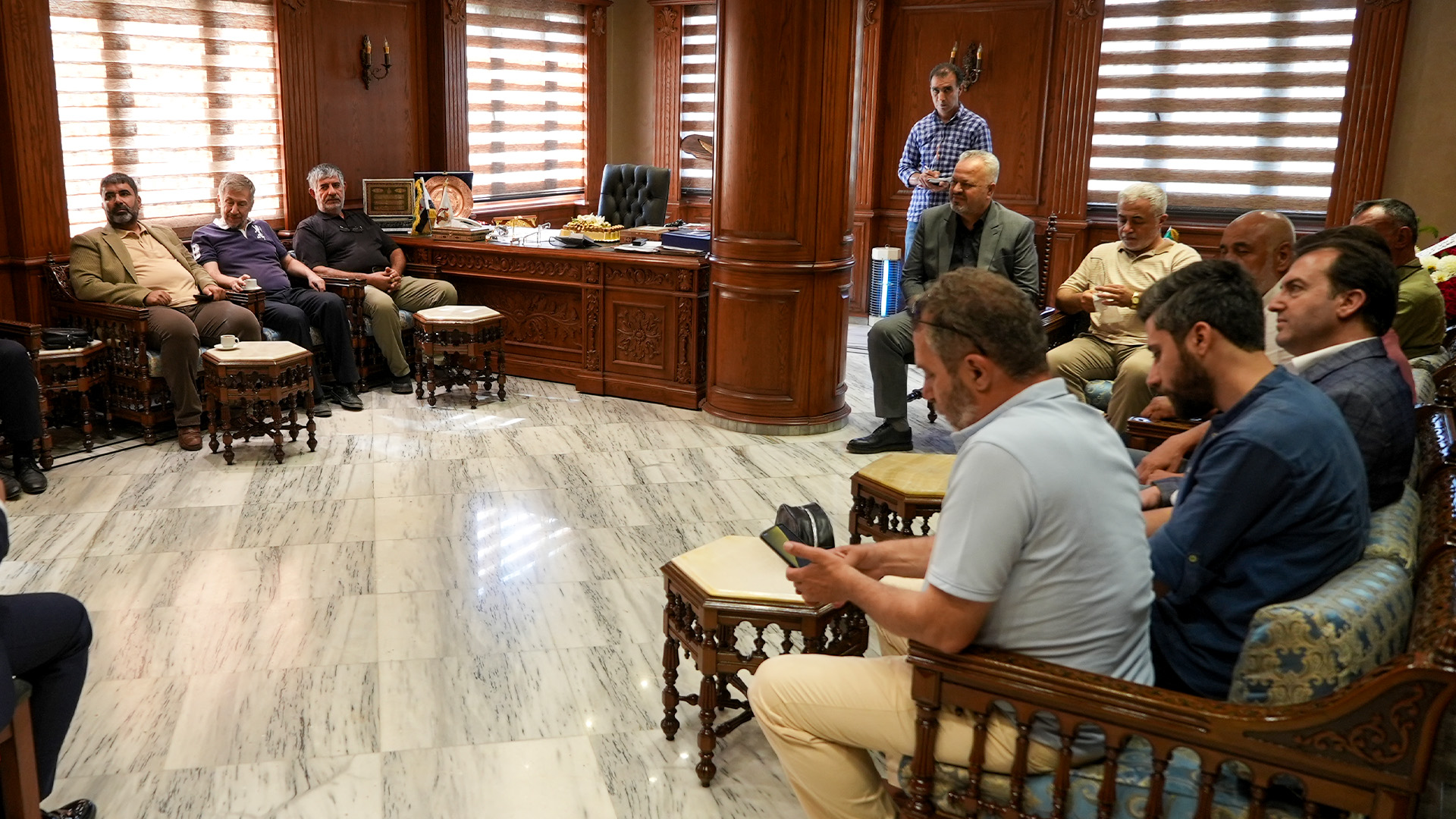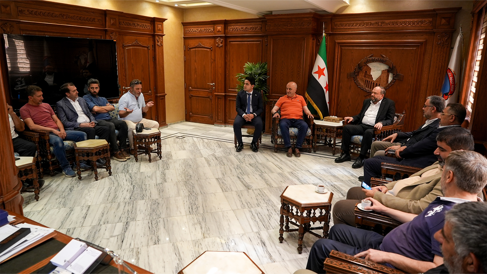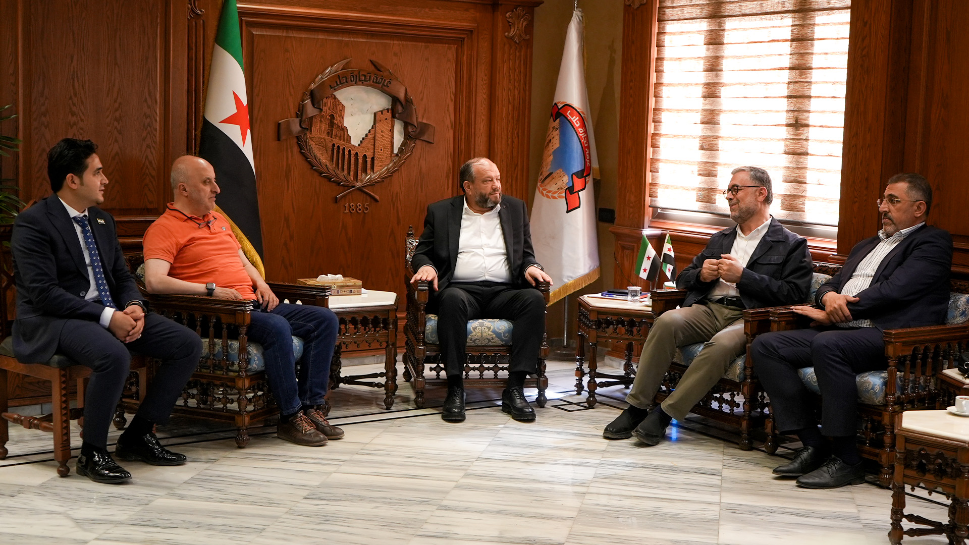 Bülbülzade Vakfı Başkanı Turgay Aldemir ve beraberindeki heyet, Halep Ticaret Odası Başkanı Muhammed Said Şeyhkâr’ı ziyaret etti.