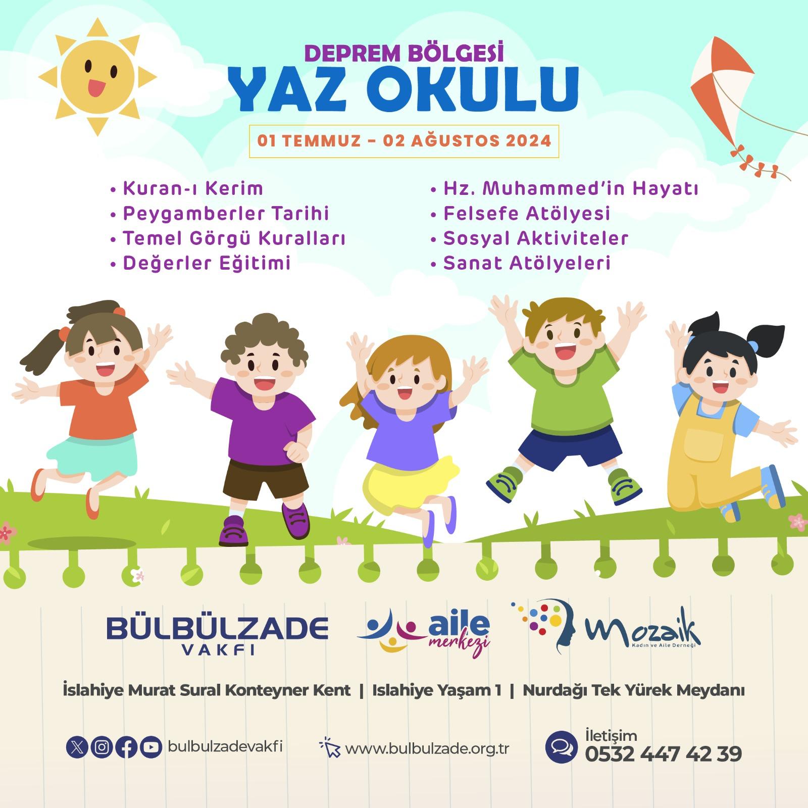 Bülbülzade Vakfı yaz etkinlikleri yaz mevsimi boyunca vakfın bünyesinde bulunan birimlerin katkıları ile birçok farklı dalda ve branşta gerçekleştirilecek.