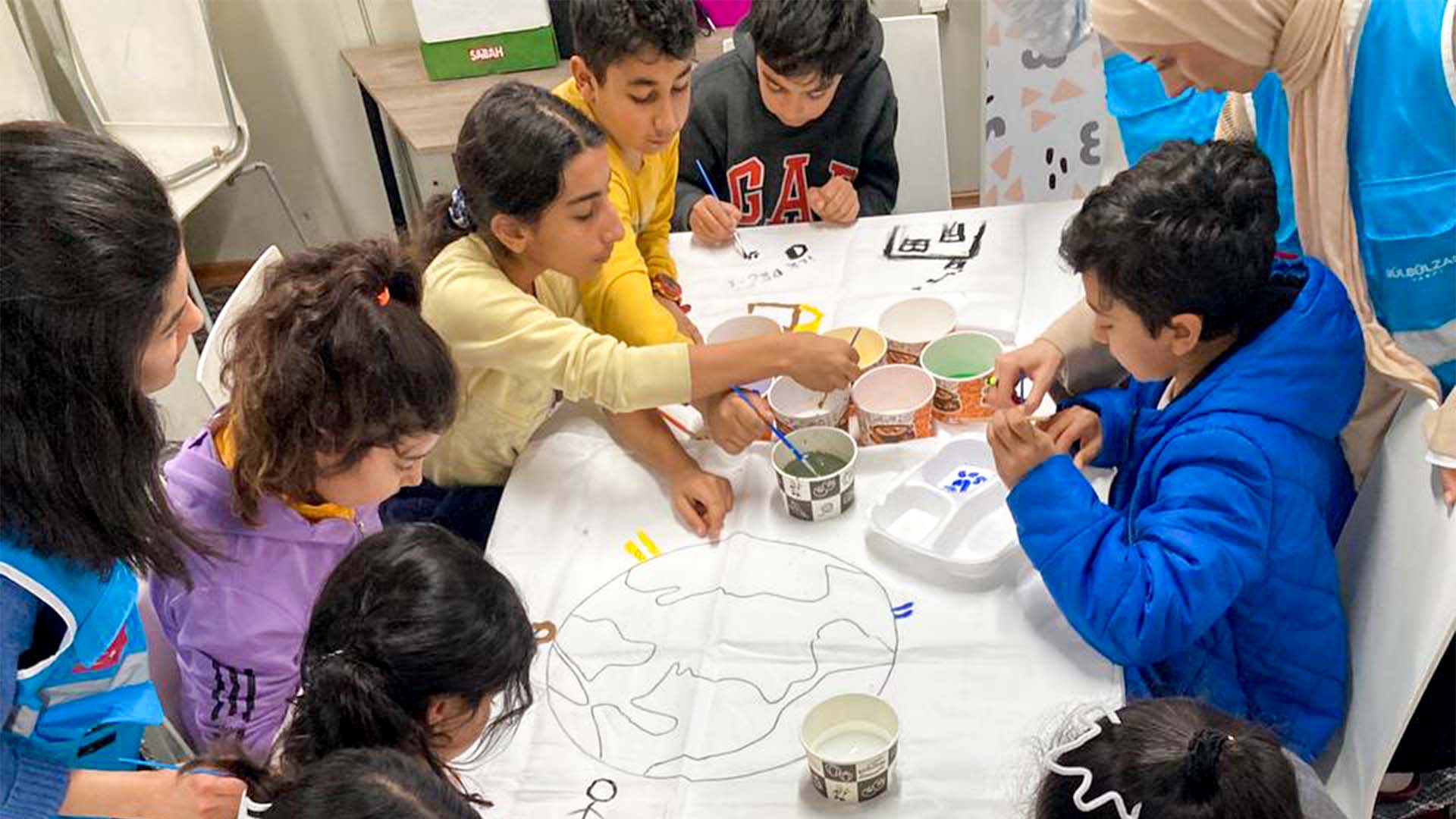 İslahiye konteyner kentinde bulunan Çocuk Yaşam Merkezi, gönüllü üniversite öğrencileri tarafından yürütülen Kış Okulu programına ev sahipliği yapıyor. Bu hafta, program kapsamında çocukların sanata olan ilgilerinin artırılması amacıyla bir Resim Atölyesi düzenlendi.