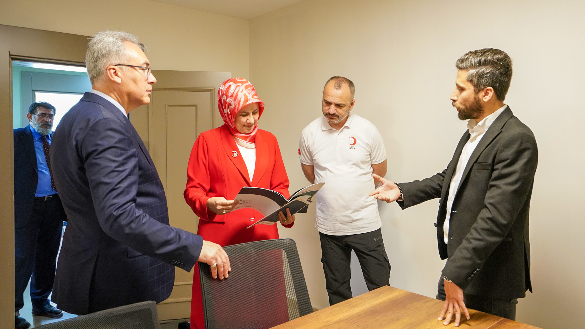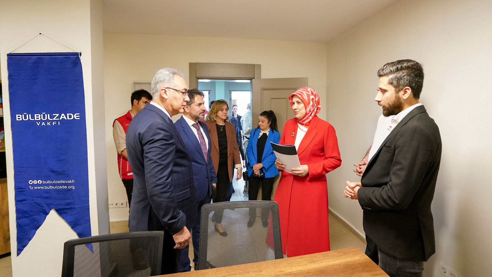 Türk Kızılay'ı Başkanı Prof. Dr. Fatma Meriç Yılmaz, vakfımızın göç ve Suriye çalışma tecrübesinin katkı olarak sunulacağı destek merkezi ofisini ziyaret etti. Ziyarette, Bülbülzade Vakfı tarafından planlanan toplumlararası iletişim, sosyal uyum, bilgilendirme ve gönüllülük danışmanlığı hakkında bilgilendirmeler yapıldı.