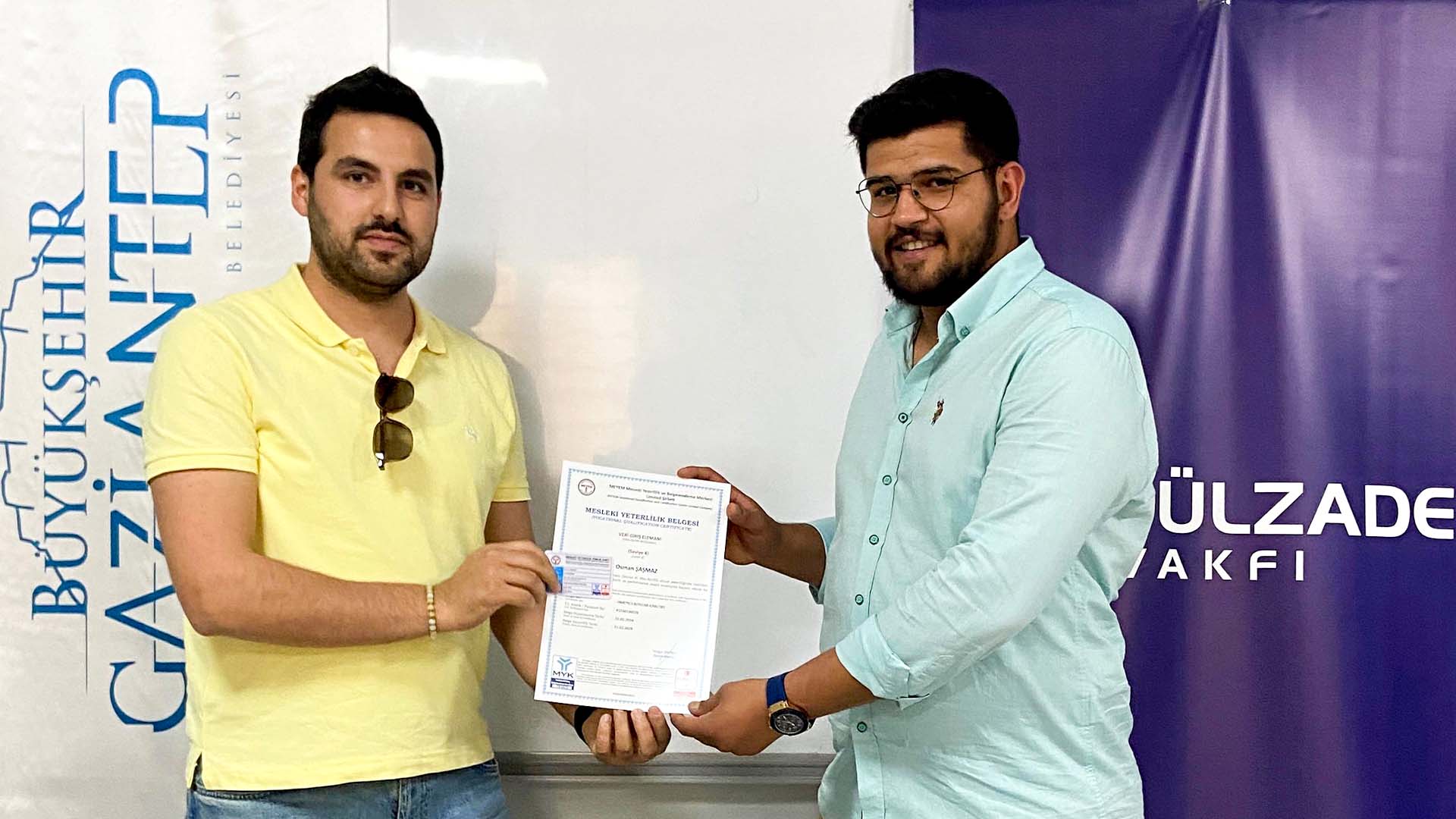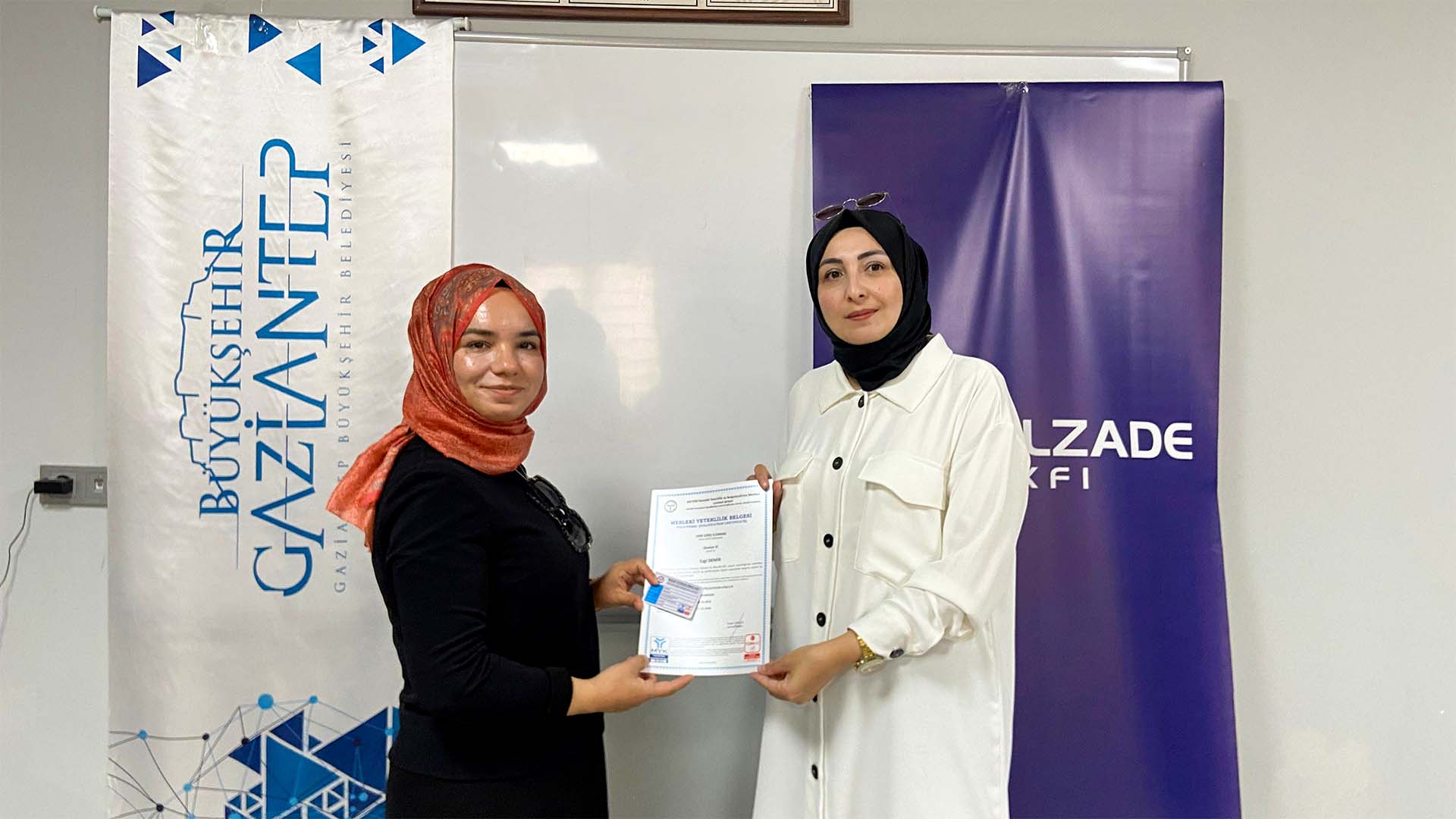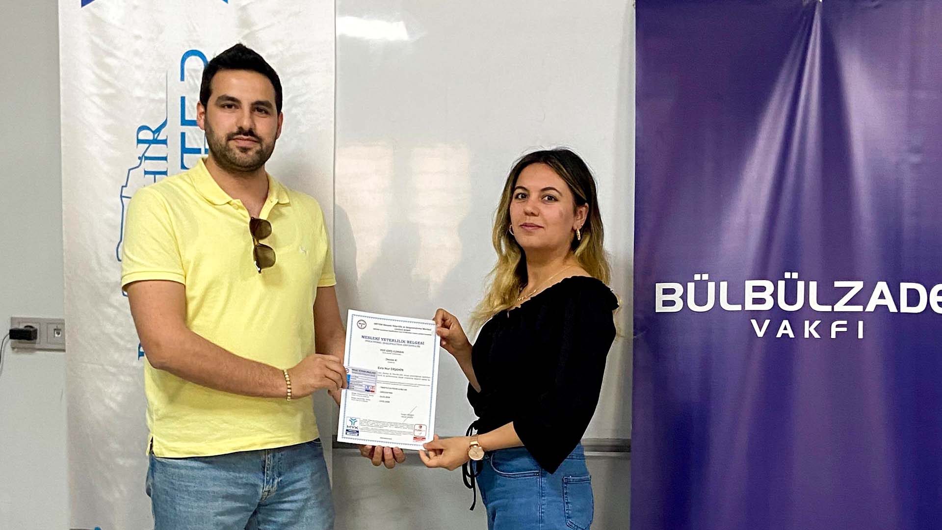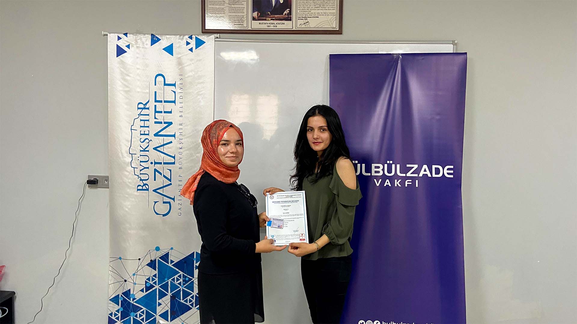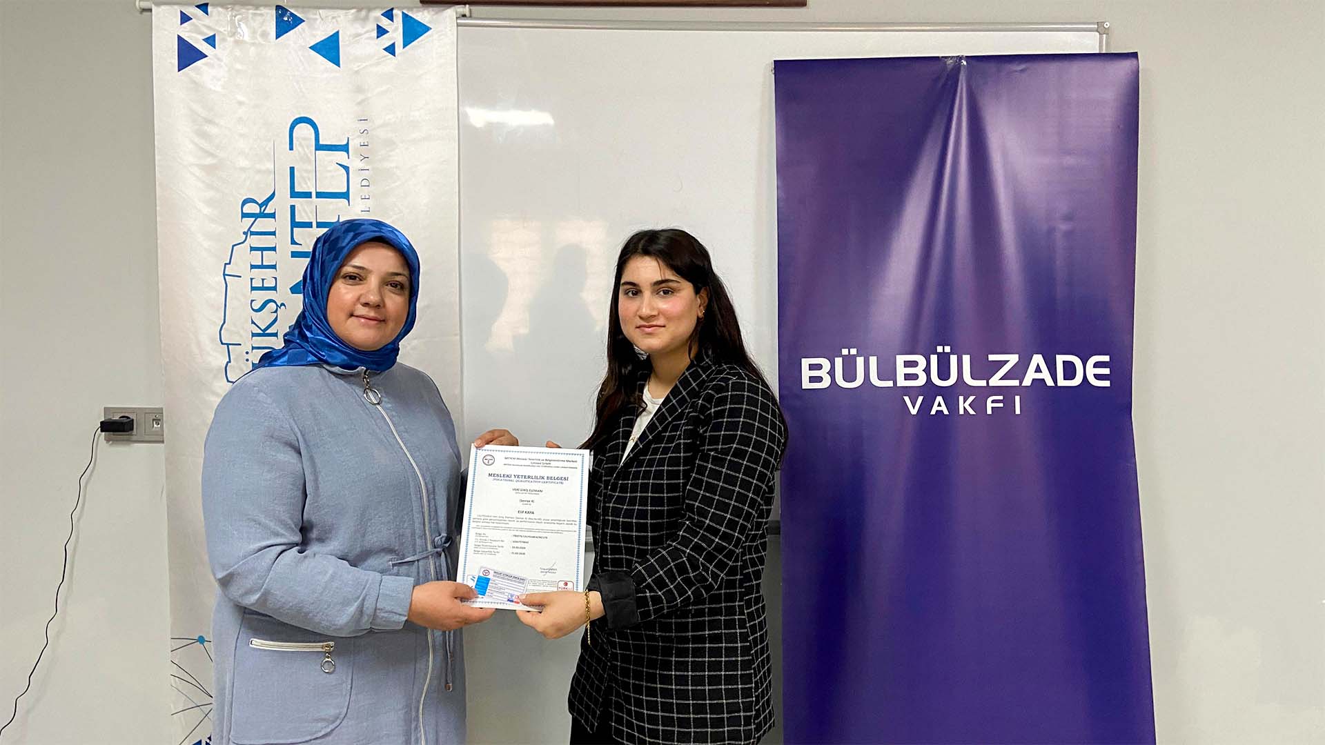 Bülbülzade Vakfı olarak deprem bölgesindeki çalışmalarımızı aralıksız sürdürüyoruz. Gaziantep Büyükşehir Belediyesi ile birlikte yürütülen MEYEM projesi kapsamında, kurslarını başarıyla tamamlayan ve bakanlık tarafından yapılan sınavda başarılı olan öğrencilere belgeleri teslim edildi.