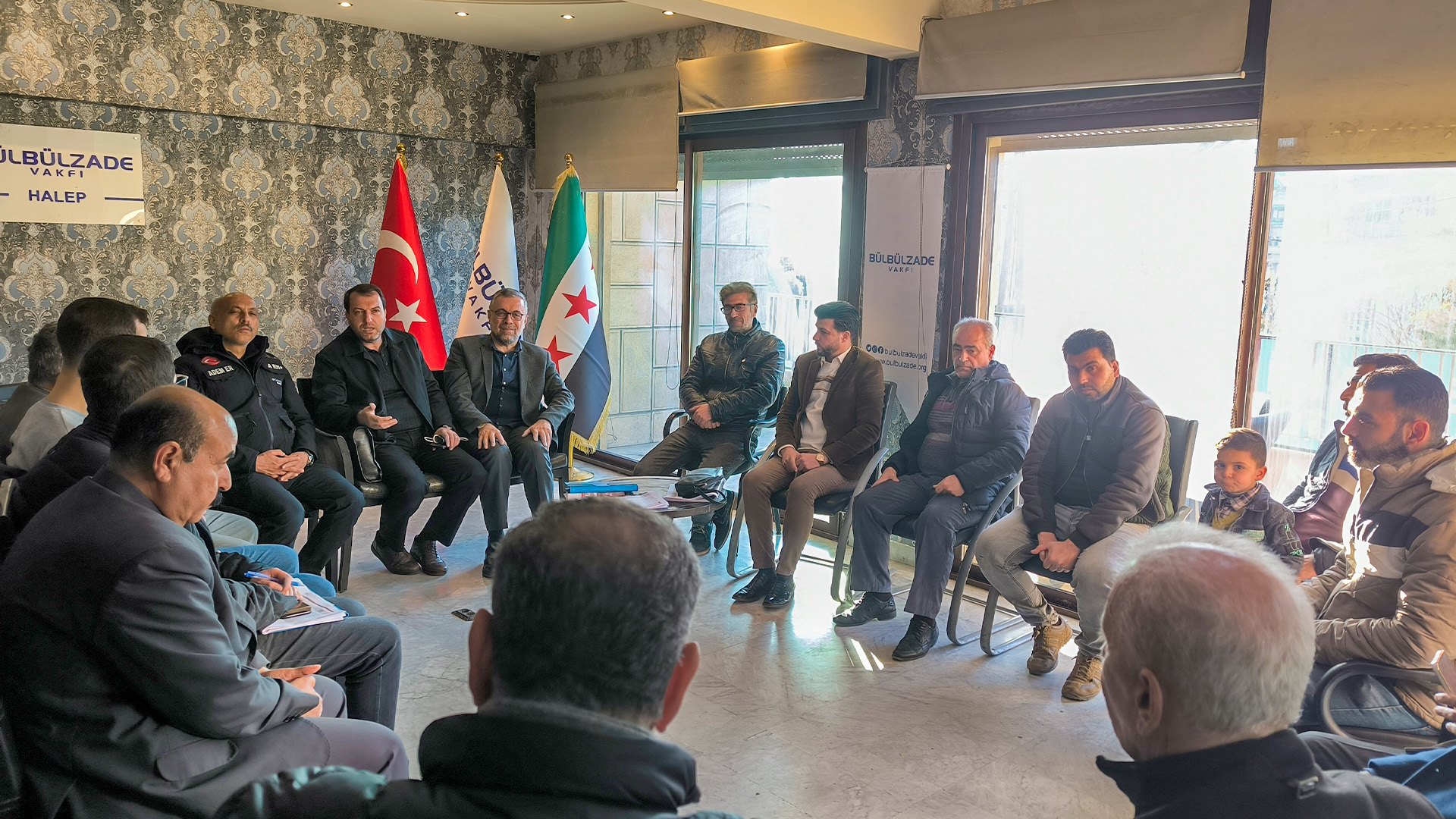 Bülbülzade Vakfı tarafından kısa süre önce açılışı yapılan Halep İrtibat Ofisi’nde, Anadolu Federasyonu Başkanı Turgay Aldemir ve Gaziantep Suriye Topluluğu Başkanı Mustafa El Hüseyin'in ve yerel kanaat önderlerinin katılımıyla bir müzakere toplantısı gerçekleştirildi.