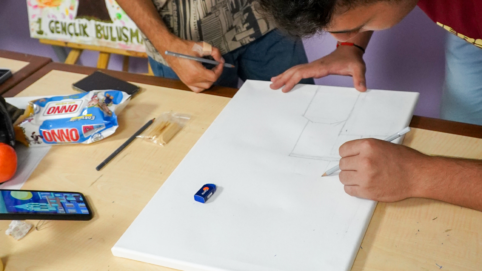 Avrupa Dayanışma Programı destekli hocalarımızın rehberliğinde gerçekleştirilen atölyelerimiz, katılımcılara bu dinamik teknik üzerinde deneyim kazanma fırsatı sunuyor. Hocalarımız eşliğinde, akrilik boyanın renk dünyasını ve karakalem atölyesinin uygulama tekniklerini keşfeden gençlerimiz, sanatsal yeteneklerini geliştiriyor.