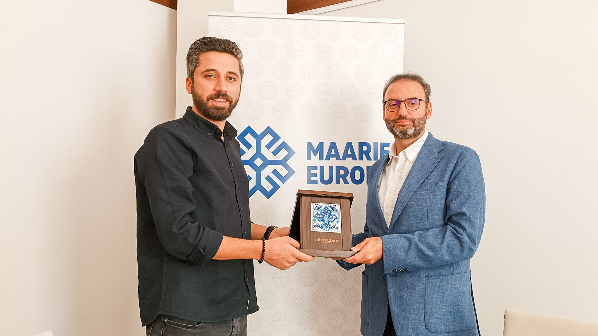 Görüşme sonunda Maarif Europe Almanya Temsilcisi Dr. Selman Dilek’e bir plaket takdim edildi.