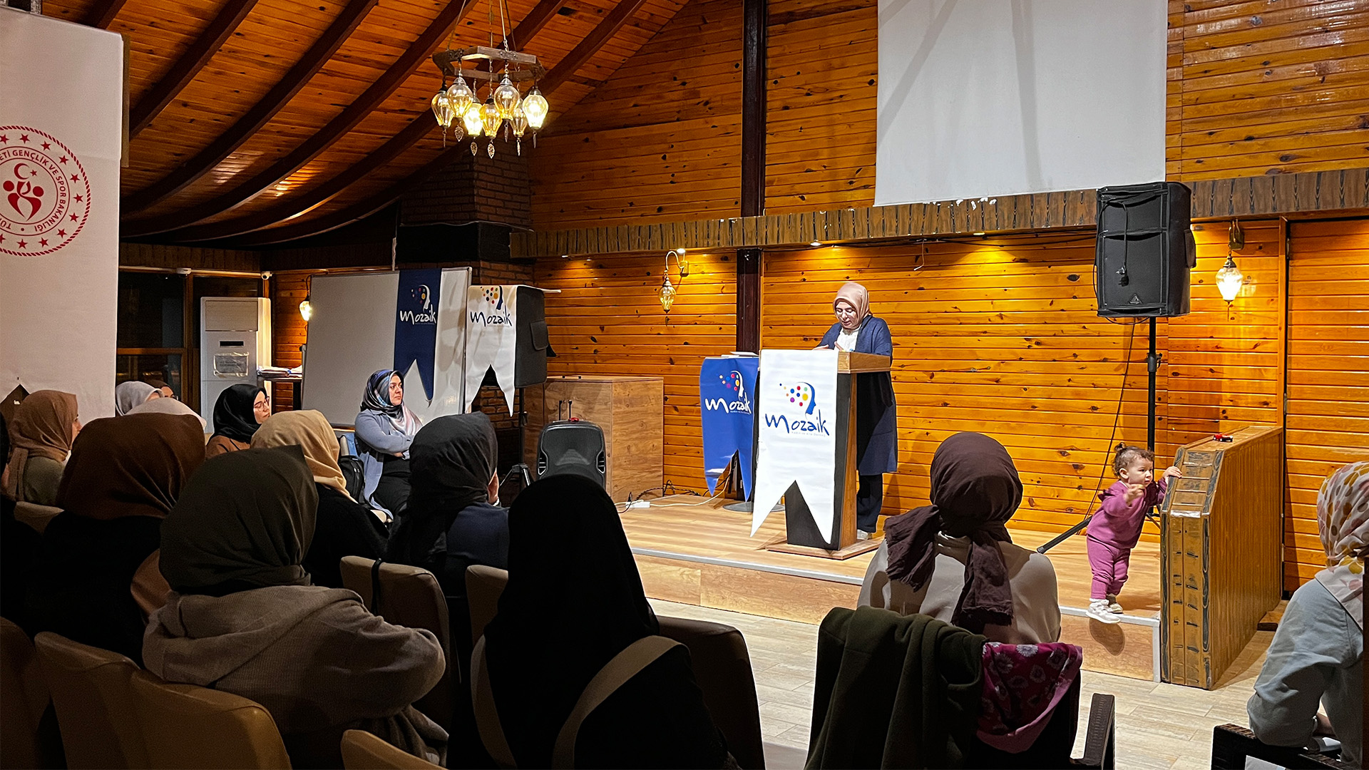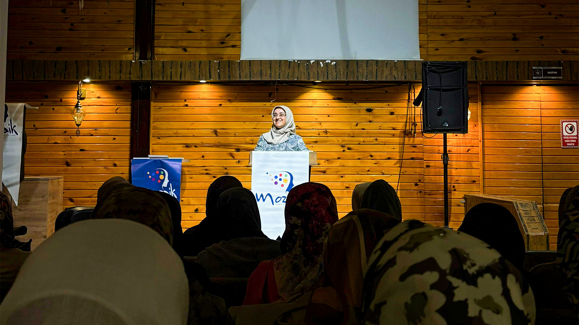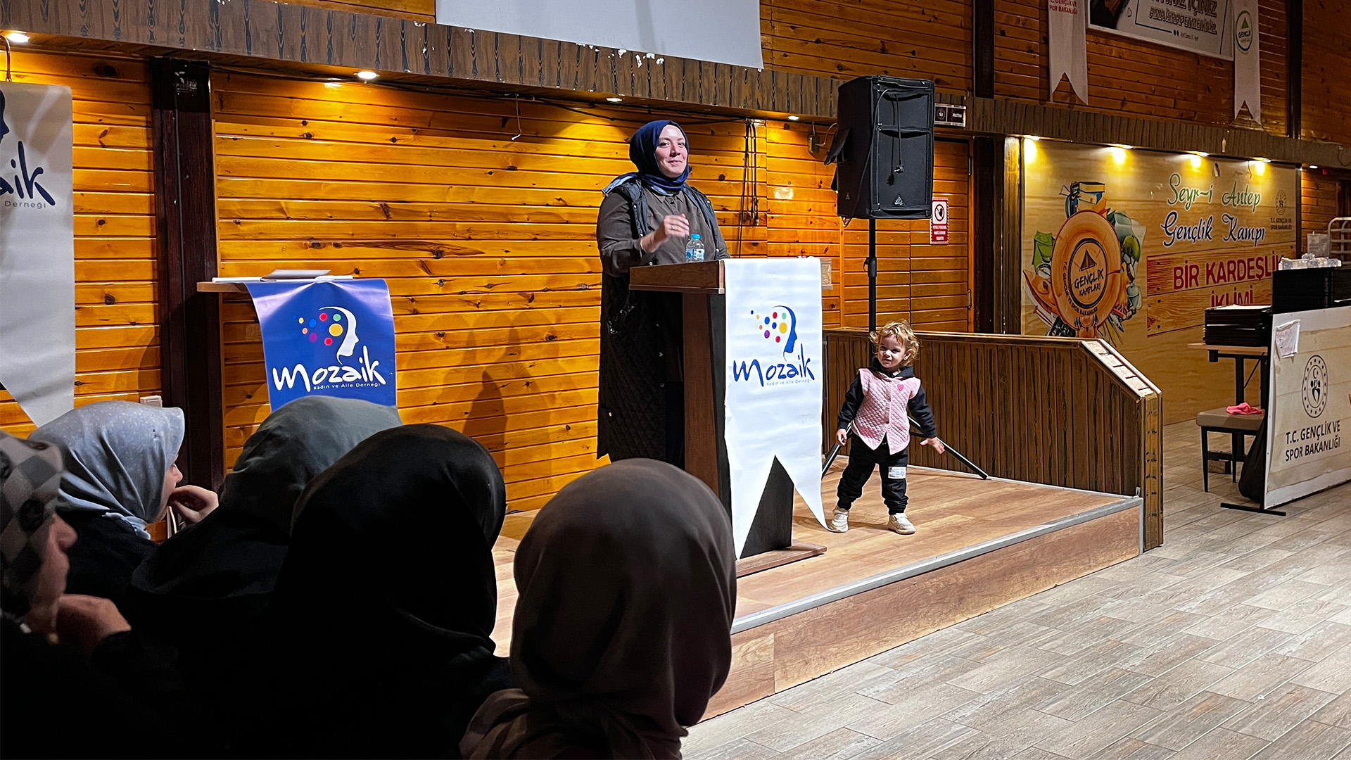 Kaynaşma oyunuyla başlayan kampta, Mozaik Kadın Derneği Yönetim Kurulu Başkanı Rabia Aldemir “İnsanlık Durumu” başlıklı bir sunum gerçekleştirdi. Sunumunda, ihtiyaç sahipleriyle doğru ve sürdürülebilir ilişkiler kurmanın önemine değinen Rabia Aldemir, “Hayatımızda karanlık ve aydınlık zamanlar vardır. Yetimlik, fakirlik, dalalet bir insanlık meselesidir. Hiç bitmedi, hayat boyu hep devam edecek, bunlar bizim sürekli hallerimiz. Ama idrakimiz genişlediği için farklı bakış açıları geliştireceğiz. Yetimlik yalnız başına kalabilme yetisi ve idrak halinin genişlemesi, fakirlik insanı insanlara muhtaçlıktan uzaklaştıran ve Allah’a muhtaçlığa götüren bir özgürleşme, bir nimet olarak ontolojik manada okunabilir. O kişileri gördüğümüzde kendi insanlık durumumuzu hatırlamalıyız. Hep bir yetimiz, hep bir şahit ararız durumumuza, hep muhtacız çünkü ilgi-alaka-sevgi-yakınlık isteriz. Yoksula, yetime ihtiyaçlarını karşılayacak şeyleri verelim ama isteyenlerin ihtiyaçlarını karşılayacak mekanizmayı kuralım. Bugün mekanizmayı kurmak bir hedef işte o zaman insanlarla kurduğumuz bu ilişkiyle Allah’la olan ilişkilerimizi de düzeltiriz. Bir amacın olması insanları harekete geçiren, umutsuzlukla mücadele ettiren temel bir bileşendir. Bu nedenle amaç duygusunu keşfetmek, yaşam deneyimlerinden anlam çıkarmak tedavinin başarılı olması için çok önemli bir unsurdur.” dedi.