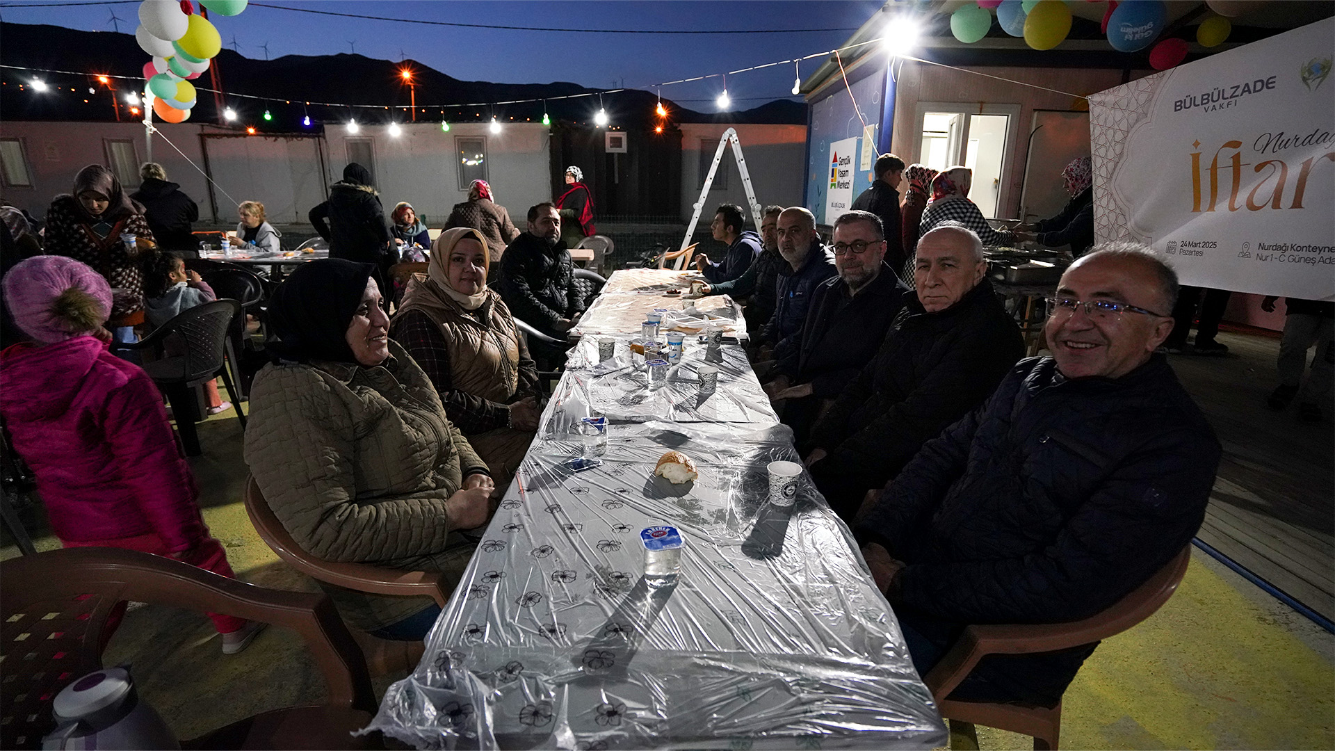 Bülbülzade Vakfı ve Swiss Aid Forum (SAF) ortaklığıyla Ramazan ayı kapsamında 24 Mart Pazartesi günü Nurdağı Konteyner Kent Nur 1-C Güneş Ada’da bulunan Bülbülzade Vakfı Çocuk Yaşam Merkezi’nde iftar programı düzenlendi. Programa, Nurdağı İlçe Eğitim Müdürü Musa Yıldırım, Bülbülzade Vakfı, Swiss Aid Forum, BEKAM, Hayata Dokun Yetim Derneği, konteyner kent sakinleri ve çocuklar katılım sağladı.