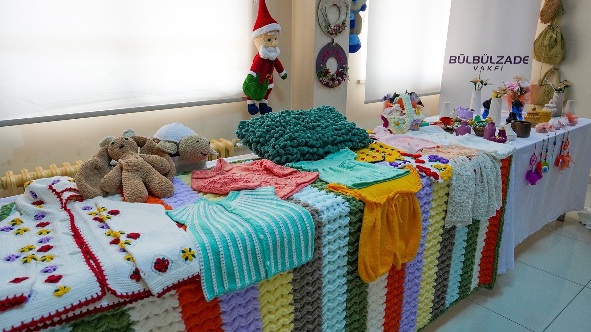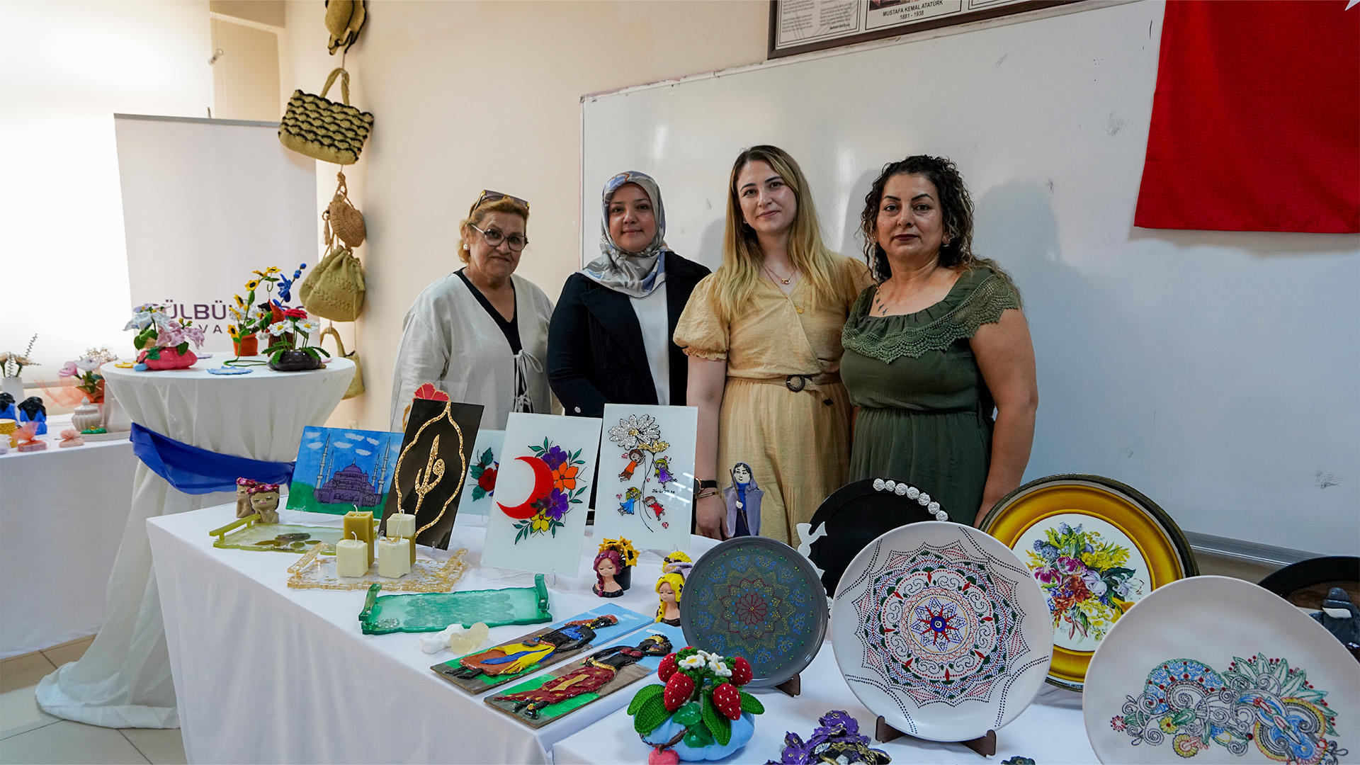 Bülbülzade Vakfı’nın deprem bölgelerindeki atölyelerde eğitim alan kadınların, yıl boyunca hazırladıkları el emeği ürünleri “Hayat Boyu Öğrenme Haftası” kapsamında Nurdağı Halk Eğitim Merkezi ve İslahiye Eğitim Merkezinde düzenlenen sergilerde ziyaretçilerin beğenisine sunuldu. El sanatları, geleneksel Türk nakışları, seramik, rölyef, hasır çanta, patchwork ve mefruşat gibi birçok alanda üretilen çalışmalar büyük ilgi gördü.