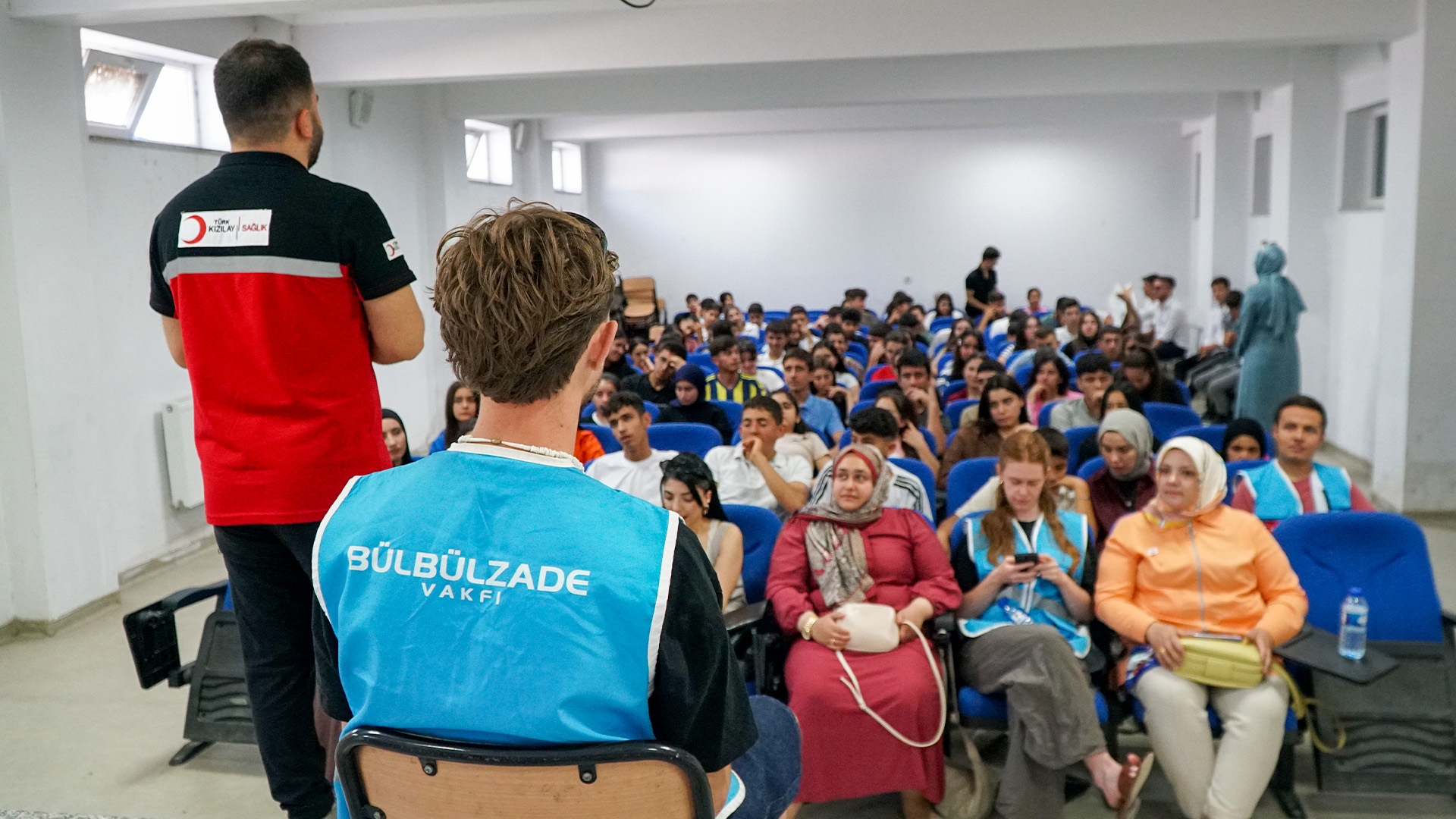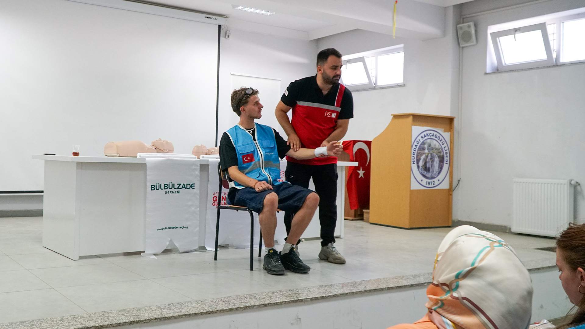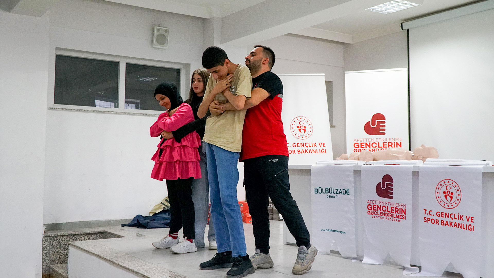 Bülbülzade Vakfı Deprem Bölgesi Koordinatörlüğü tarafından düzenlenen seminere, deprem bölgesindeki öğrencilerin yanı sıra, Avrupa Dayanışma Programı (ESC) kapsamında yurtdışından gelen kısa ve uzun dönem gönüllüler de katıldı. Türk Kızılay tarafından verilen eğitim seminerinde çevre ve kişisel güvenliğin sağlanmasından başlayarak, hasta veya yaralıya doğru şekilde yaklaşma yöntemleri üzerinde duruldu. Bilinç kontrolünün nasıl yapılacağı, tam tıkanmalarda uygulanması gereken Heimlich manevrası detaylı şekilde anlatıldı. Ayrıca eğitimde, farklı kanama türleri ve bu durumlarda yapılması gereken ilk yardım uygulamaları anlatıldı. Yanlış müdahalelerin ne gibi olumsuz sonuçlara yol açabileceği üzerinde durularak, Bayılma ve şok anlarında nasıl davranılması gerektiği, şok pozisyonunun doğru şekilde nasıl verileceği örneklerle açıklandı. Son olarak yanık türleri ve yanıklarda uygulanması gereken ilk yardım adımları paylaşıldı; sık yapılan hataların nelere neden olabileceği konusunda katılımcılar bilgilendirildi.
