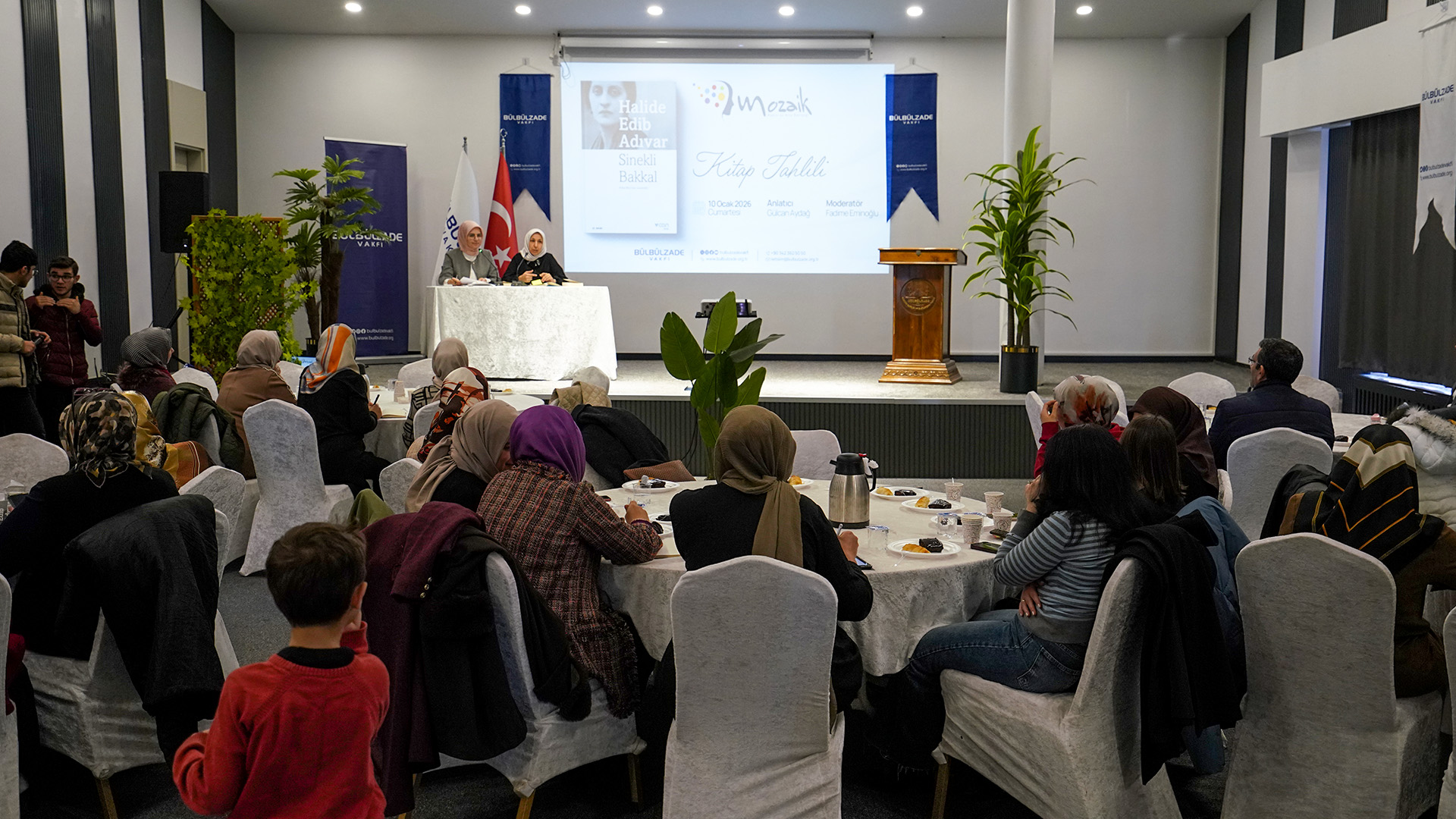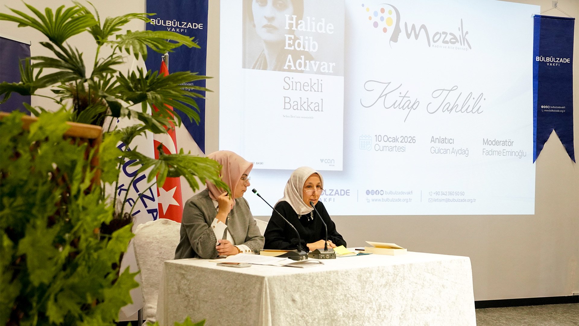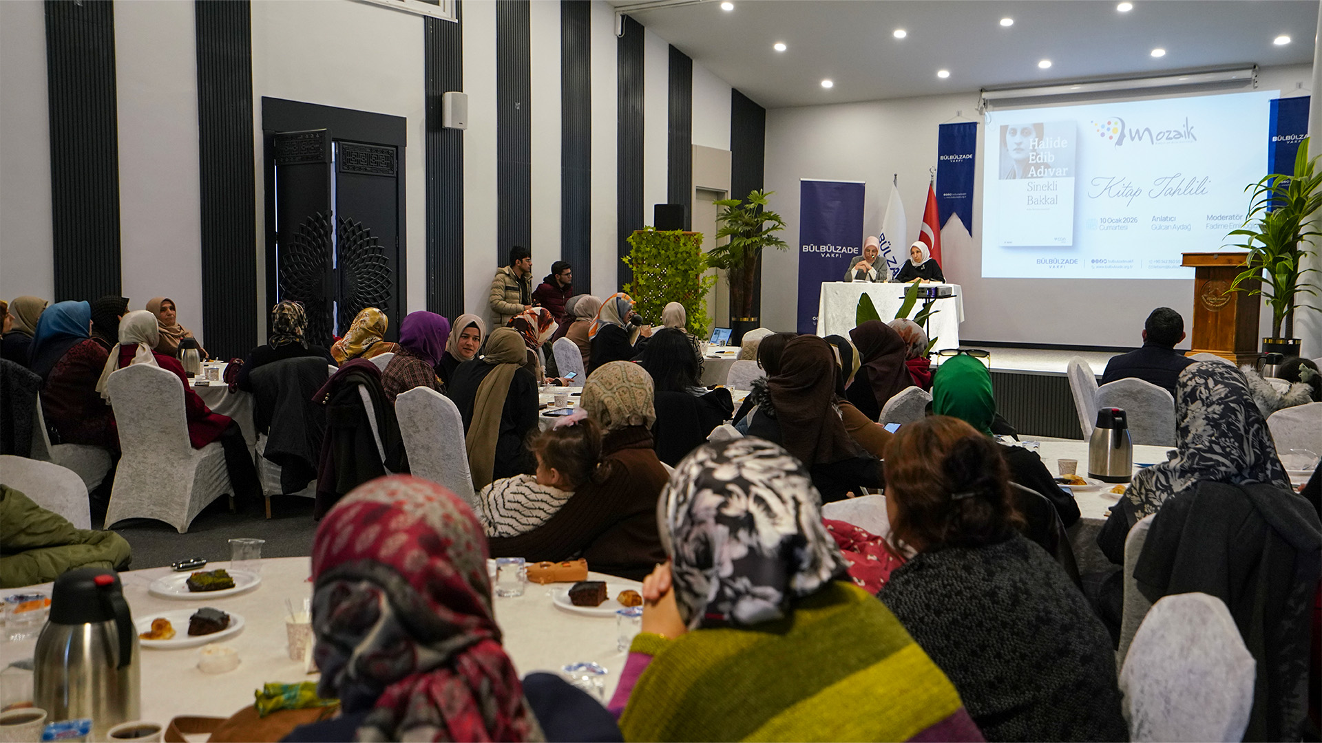 Bülbülzade Vakfı çatısı altında faaliyetlerini yürüten Mozaik Kadın ve Aile Derneği, geleneksel hale getirdiği kitap tahlil programları kapsamında bu ay, Türk edebiyatının mihenk taşlarından Halide Edip Adıvar’ın ölümsüz eseri "Sinekli Bakkal"ı konuk etti. Zade Life Otel’in Zeugma toplantı salonunda düzenlenen etkinliğin moderatörlüğünü Fadime Eminoğlu, kitap sunumunu ise Gülcan Aydağ yaptı. Türkiye’nin modernleşme sancıları arasında din ile sanatın, gelenek ile yeninin nasıl barışabileceğini arayan Sinekli Bakkal’daki mekan kullanımı, karakterizasyon, dil ve üslup da etraflıca tartışıldı.