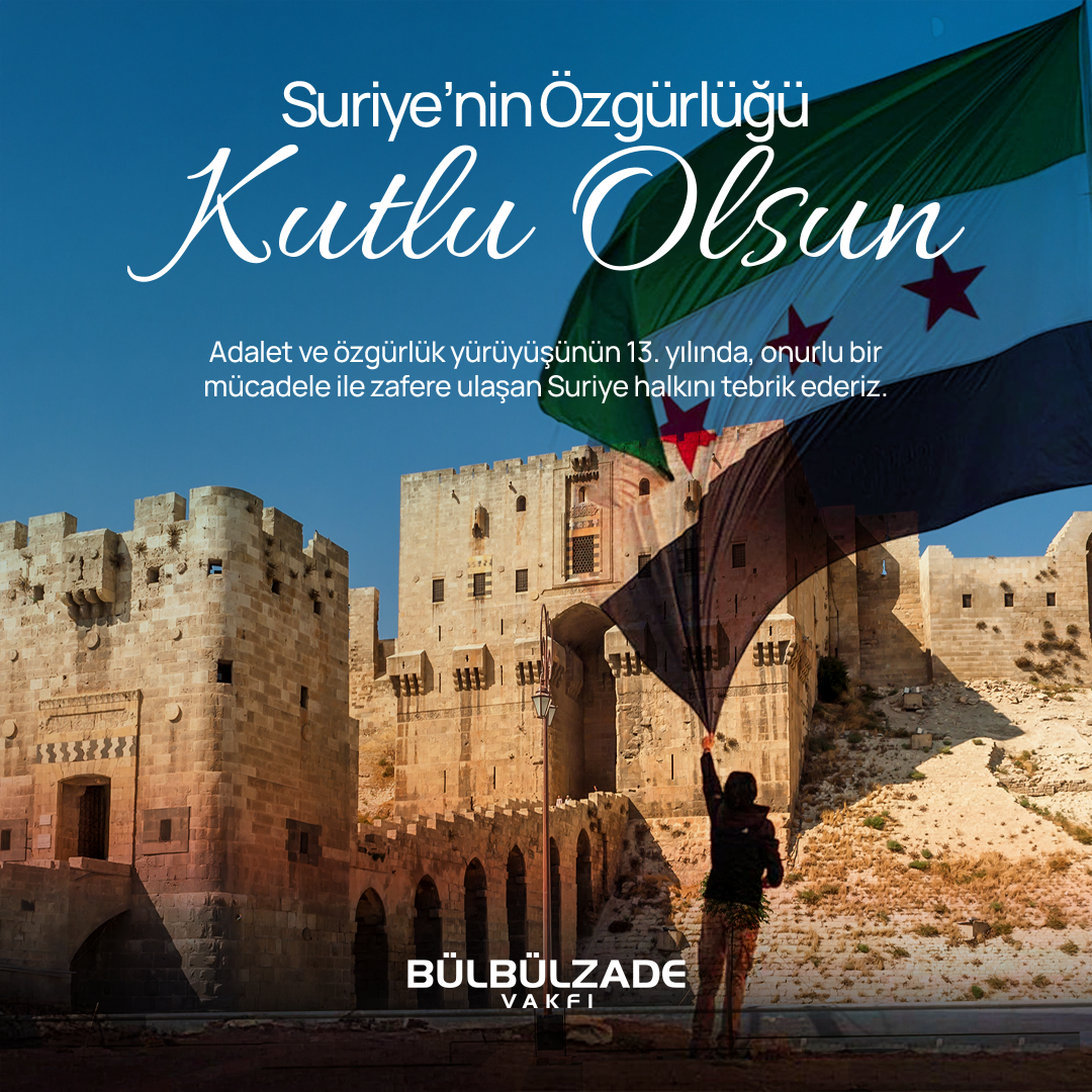 Adalet ve özgürlük yürüyüşünün 13. yılında, onurlu bir mücadele ile zafere ulaşan Suriye halkını tebrik ederiz.