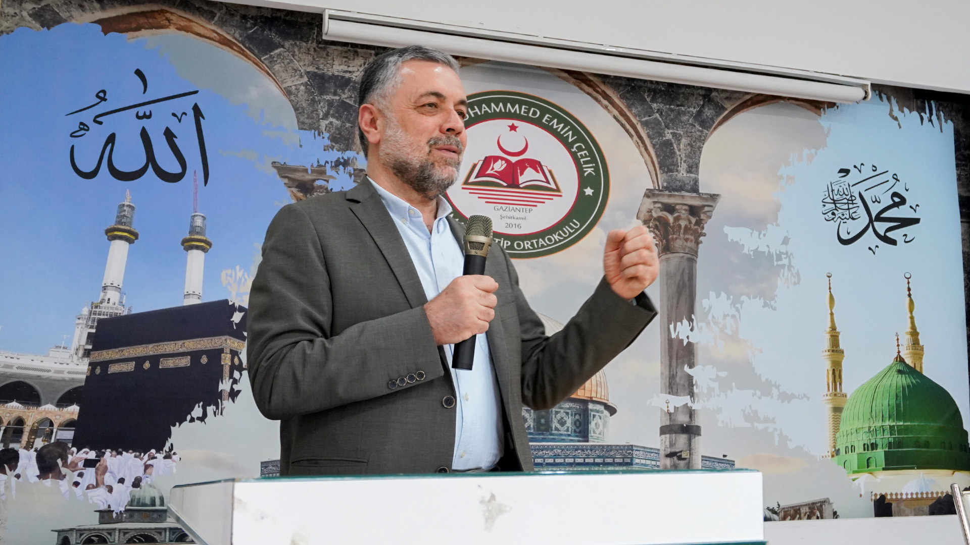 Bülbülzade Vakfı Başkanı Turgay Aldemir, Şehit Muhammed Emin Çelik İmam Hatip Ortaokulu’nda düzenlenen "Peygamberimizin Gözüyle İnsan ve İletişim" konulu seminere konuk oldu. Okulun konferans salonunda öğretmenler ve çok sayıda öğrencinin katılımıyla gerçekleştirilen programda Aldemir, gençlere Hazreti Peygamber'in hayatından günümüze ışık tutan iletişim örneklerini anlattı. İnsanın hem kendisiyle hem de çevresiyle kurduğu bağın niteliği üzerine durulan seminerde, doğru iletişimin toplumsal huzur üzerindeki etkisi ve şahsiyet inşasındaki rolü kapsamlı bir şekilde ele alındı. Salonu dolduran öğrencilerin ilgiyle takip ettiği buluşmada Aldemir, modern çağın iletişim sorunlarına karşı nebevi yöntemin sunduğu çözüm yollarına dikkat çekti.
