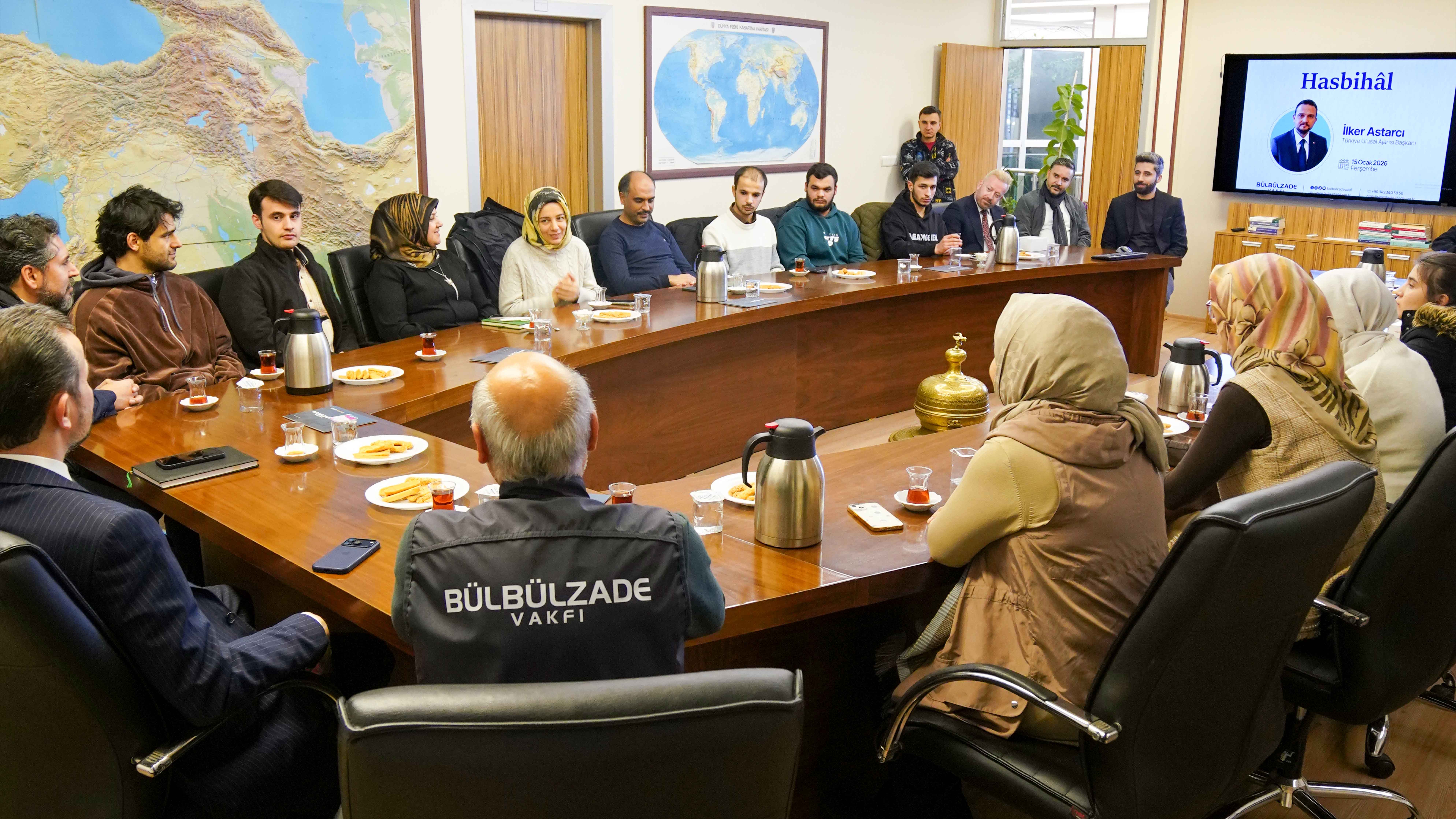 Hasbihal programı, vakıf yöneticileri ve genç öğrencileri bir araya getiren samimi bir atmosferde başladı. Toplantıda güncel meseleler geniş bir perspektifle ele alındı. Türkiye Ulusal Ajansı Başkanı İlker Astarcı ajansın gençlere sunduğu fırsatlar ve projeler üzerine değerlendirmelerde bulundu. Ajansın yedi yıllık süreçte geçirdiği dönüşümüne de değinen Astarcı, uluslararası arenada programa aldıkları ülke sayısının her yıl arttığını ve önümüzdeki dönemlerde Suriye’nin de bu ülkelere ekleneceği bilgisini verdi. Bülbülzade Vakfı Başkanı Turgay Aldemir ve İlker Astarcı, öğrencilerin merak ettiği soruları içtenlikle yanıtlayarak interaktif bir soru-cevap oturumu gerçekleştirdi. Bilgi paylaşımının yanı sıra, öğrencilerin enerjisiyle birleşen sohbette zaman zaman eğlenceli ve keyifli anlar da yaşandı.