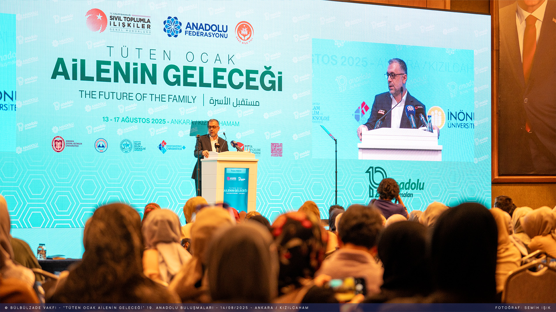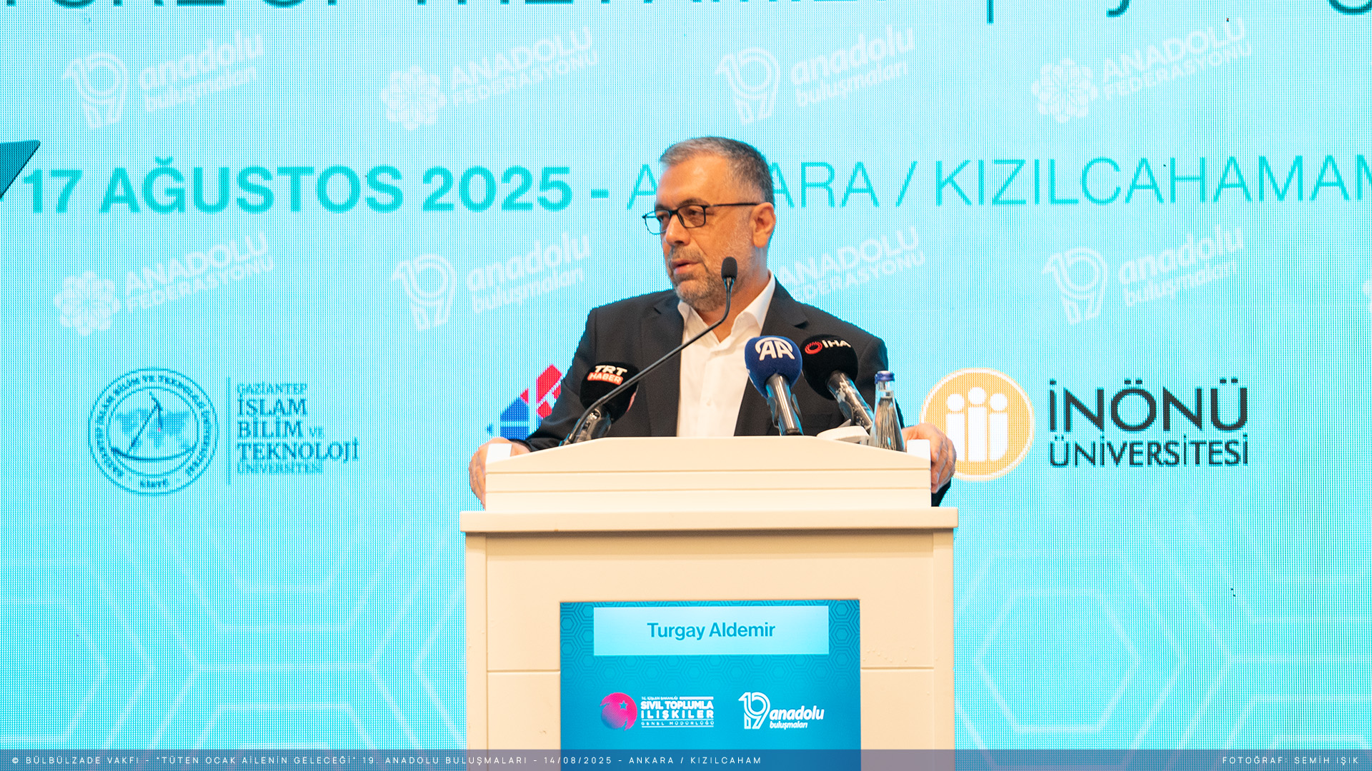 Açılış konuşmasını gerçekleştiren Anadolu Federasyonu Yönetim Kurulu Başkanı Turgay Aldemir, “İnsanı yaşat ki devlet yaşasın şiarını somut ve etkili bir şekilde hayata geçirmek için gayretinde olduklarını belirterek, “İnsanın dünyada var oluş gerekçesini en doğru uygulamalarla ortaya koymak, toplumsal değerlerimizi yaşatmak ve geliştirmek için buradayız.” dedi. Ayrıca toplum olarak sorumluluklarımızı yerine getirmemiz gerektiğini vurgulayarak “Ne yazık ki bugün, ailenin ve insanlığın temelini sarsmaya yönelik girişimler, değerlerimizi yıpratmaya çalışan güçler mevcut. Biz ise böyle bir süreçte seyirci kalamayız. Üzülmekle yetinmek yerine elimizi taşın altına koymak, üzerimize düşen sorumlulukları yerine getirmek zorundayız. Amacımız, insanın güvende olması ve birbirine dayanışma ile bağlı bir toplumun inşasıdır.” dedi.