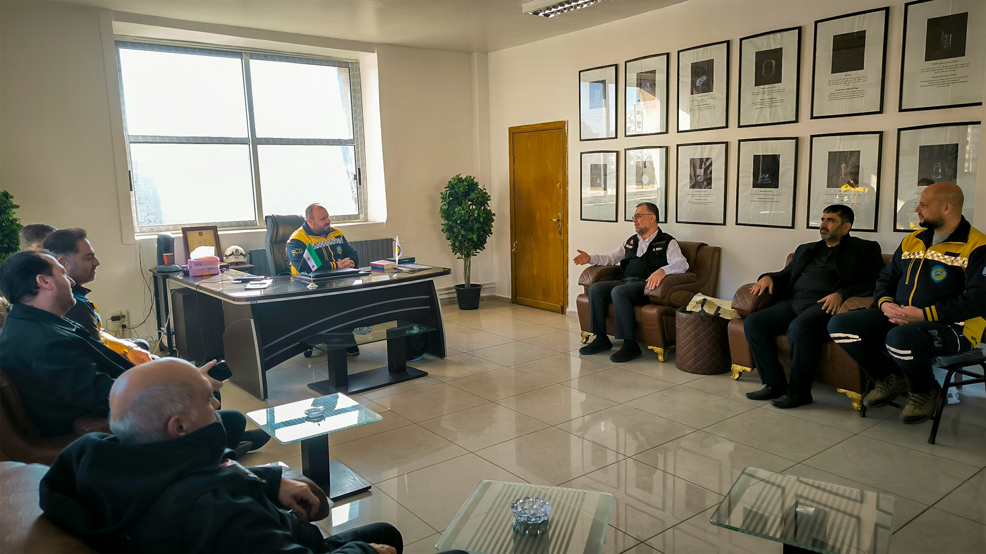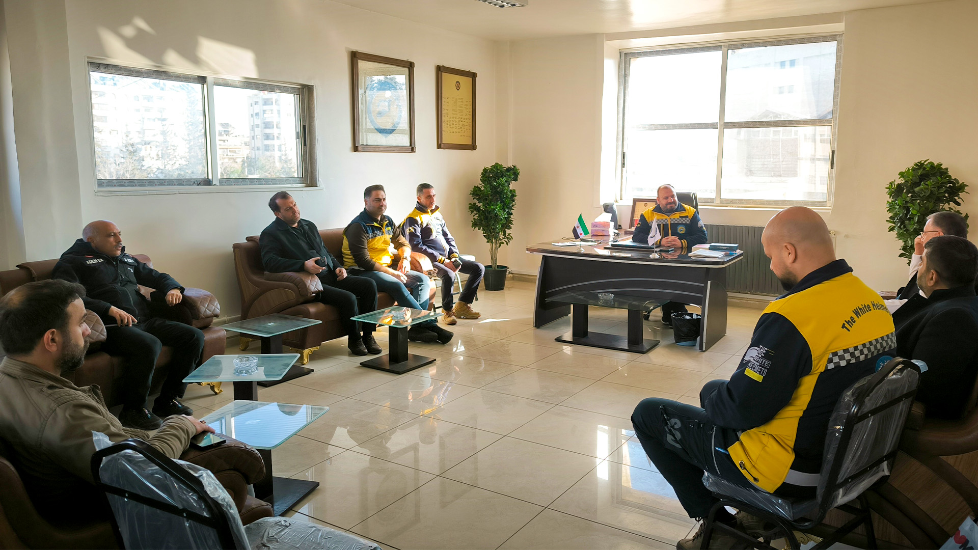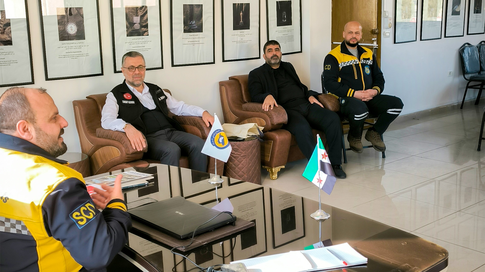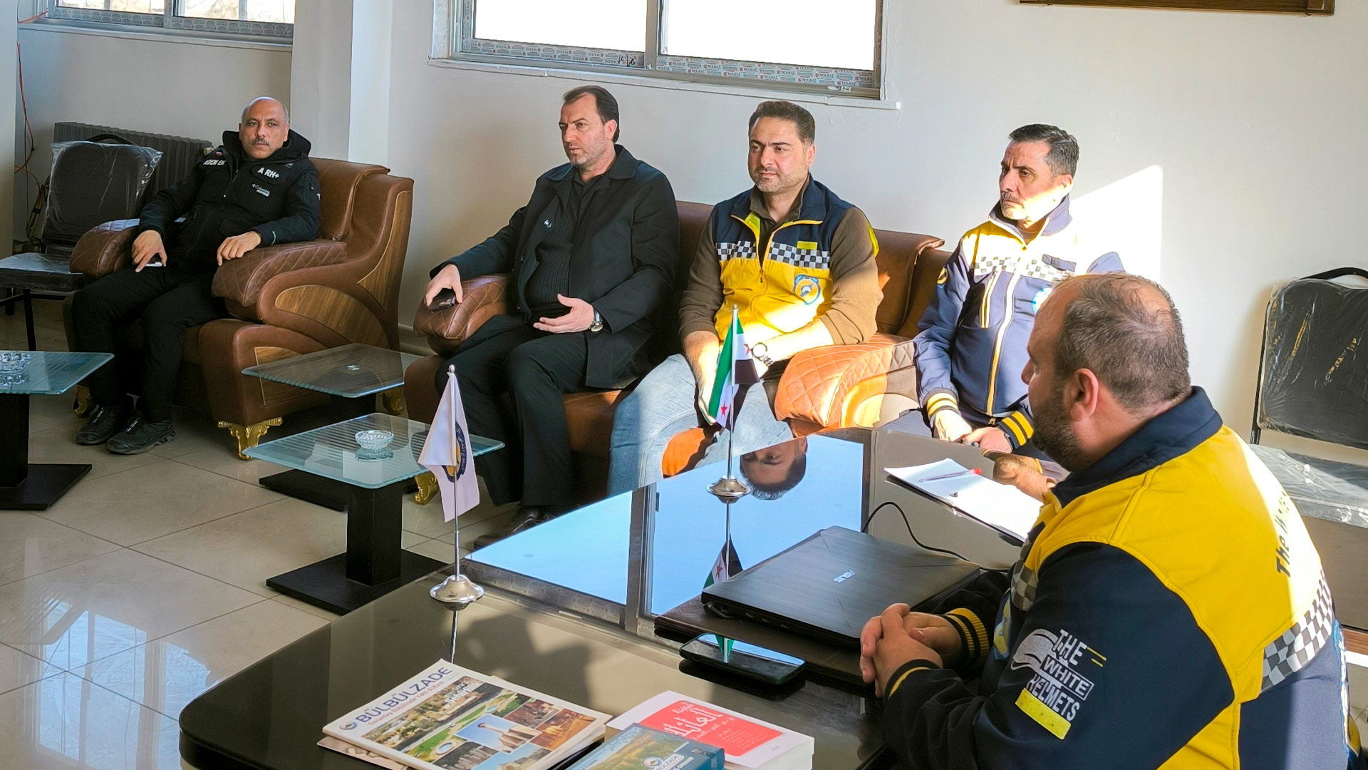 Anadolu Federasyonu Başkanı Turgay Aldemir, Gaziantep Suriye Topluluğu Başkanı Mustafa Hüseyin ve Bülbülzade Vakfı Genel Sekreteri Adem Er, Uluslararası Beyaz Baretliler Derneği'nin Şam ofisini ziyaret etti.