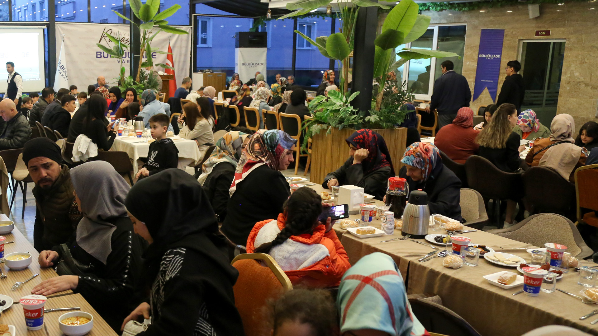 Bülbülzade Vakfı Yardım Komisyonu Ramazan ayı kapsamında 24 Mart Pazartesi günü vakıf merkezinde iftar programı düzenledi. Programa, Bülbülzade Vakfı, Yardım Komisyonu, Ortadoğu Medya, Mozaik Derneği, Anadolu Öğrenci Birliği ve 12 gün boyunca Yardım Merkezi’nde “Bir Çocuk da Siz Giydirin” kampanyası kapsamında gerçekleştirilen bayramlık kıyafet yardımına destek olan gönüllüler katılım sağladı.