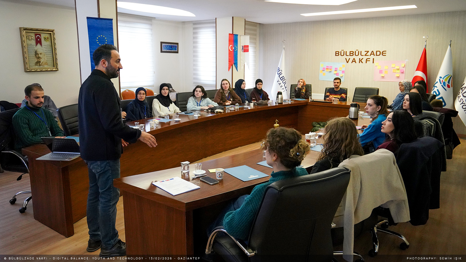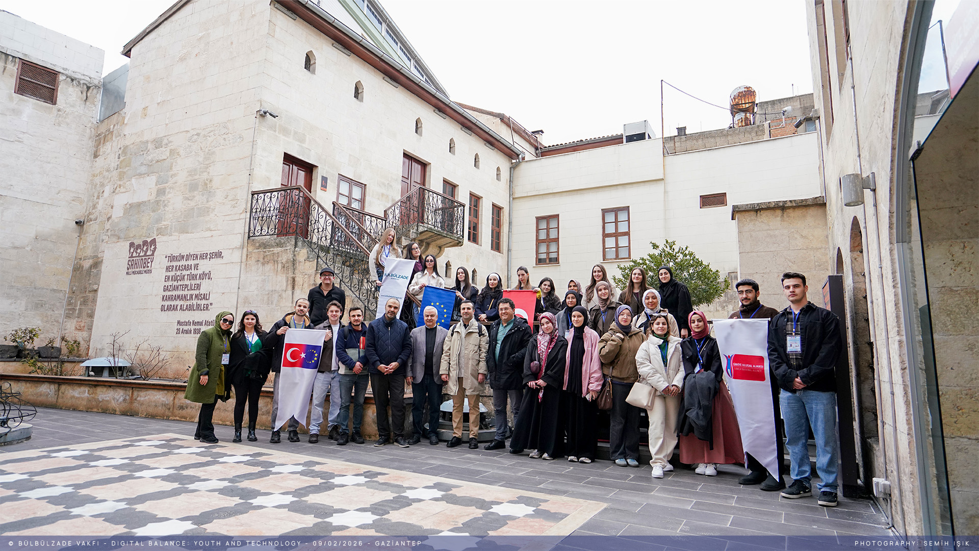 Türkiye Ulusal Ajansı tarafından desteklenen “Dijital Denge: Gençlik ve Teknoloji” temalı uluslararası gençlik hareketliliği projemizi, 09-15 Şubat 2026 tarihleri arasında Sırbistan’dan gelen misafirlerimiz ile Türkiye ve Suriyeli gençlerimizin katılımıyla Gaziantep’te hayata geçirdik. Vakıf Başkanımızın “Sınırları Aşan Kardeşlik: Türkiye ve Sırbistanlı Gençlerin Ortak Değerlerde Buluşması” başlıklı sunumuyla başlattığımız projemizde, ortak değerler etrafında samimi bir diyalog kurarak gençlerimizin dijital çağda bilinçli bireyler olarak gelişimini destekledik.