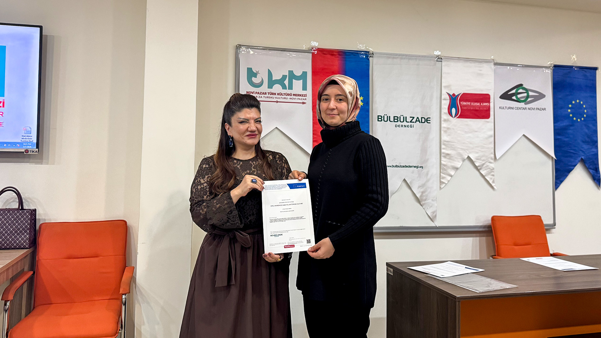 Bülbülzade Derneği koordinatörlüğünde, Novi Pazar Türk Kültür Merkezi ev sahipliğinde "Sivil Farkındalık ve Gönüllülük Kültürü" başlıklı Erasmus+ KA151 Gençlik Hareketliliği proje faaliyetimizi Sırbistan’ın Novi Pazar (Yeni Pazar) şehrinde tamamladık. Gençlerimizin sivil farkındalık ve gönüllülük bilincini uluslararası iş birlikleriyle güçlendirdik.
