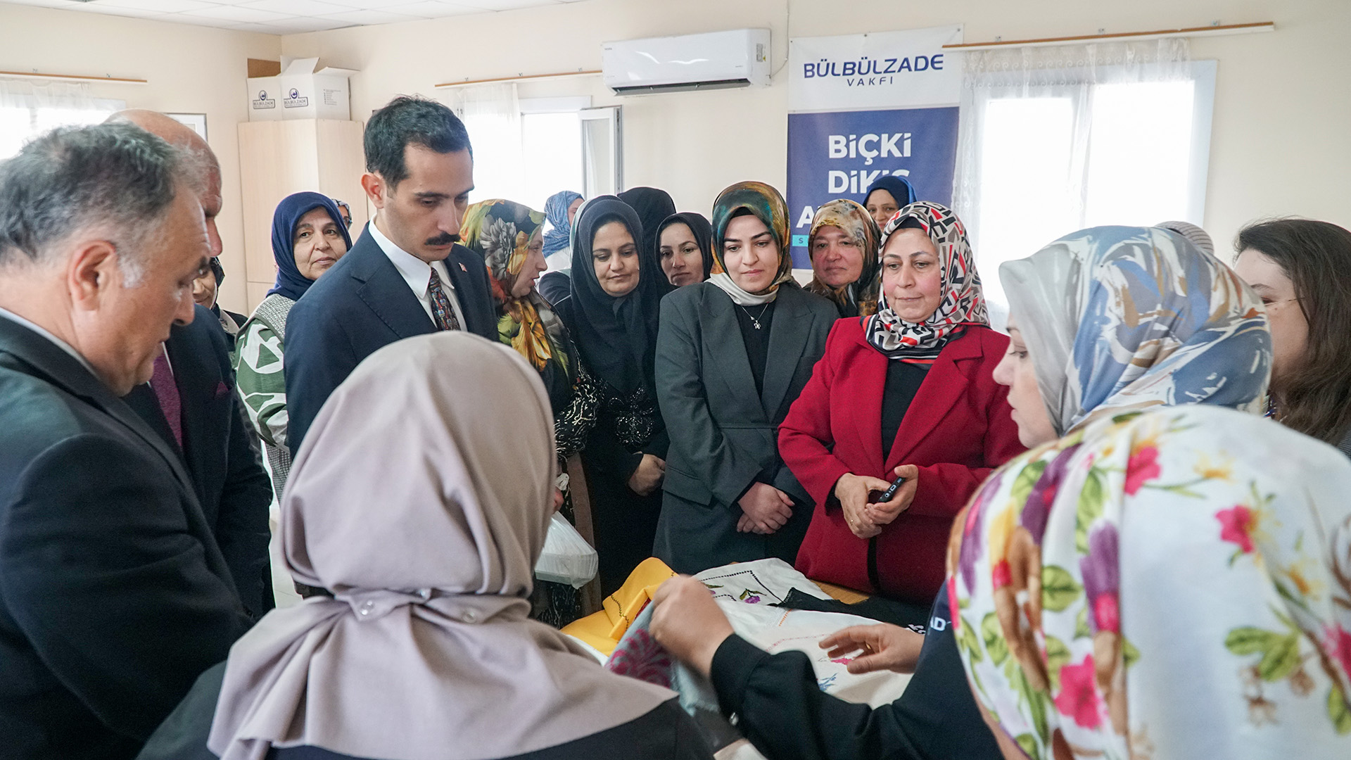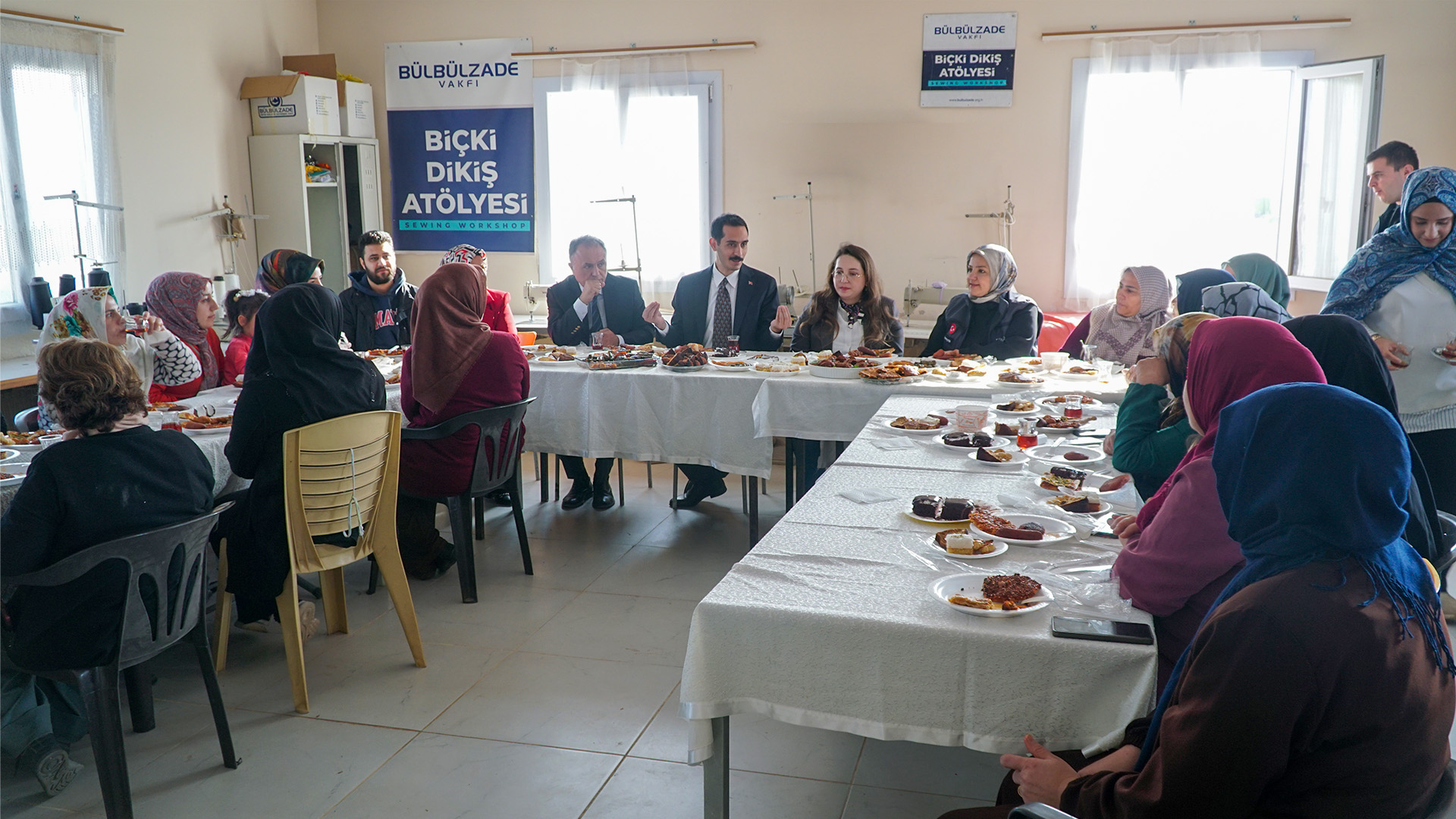 İslâhiye Kaymakamı Mehmet Soylu ve eşi Kübra Soylu hanımefendi, beraberindeki Gaziantep İl Millî Eğitim Müdürlüğü Hayat Boyu Öğrenme Şube Müdürü Tacim Durmuş ile İslâhiye Halk Eğitimi Merkezi Müdürü Bülent Ufuk Kuş’la birlikte Bülbülzade Vakfı Biçki Dikiş Atölyesi İslâhiye Kurs Merkezini ziyaret etti. Ziyarete Bülbülzade Vakfı Deprem Bölgesi Koordinatörü Zemzem Çetin eşlik etti.