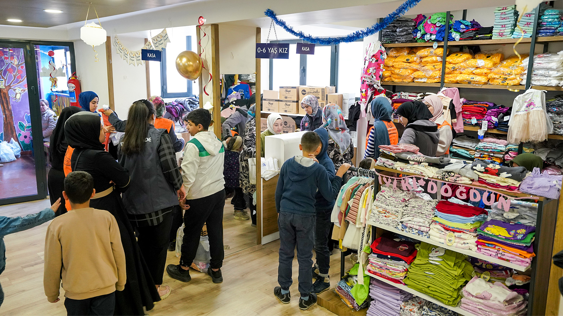 Mağazamızdaki tüm işleyişi, ailelerimizin onurunu koruyan profesyonel bir randevu sistemiyle yürütüyoruz. Ekiplerimiz, her gün misafir edeceğimiz ailelerimizi bir gün önceden arayarak randevu saatlerini netleştiriyor. Sabah saat 09.00 itibarıyla kapılarımızı açıyor, misafirlerimize sıra numarası vererek onları gönüllü çalışanlarımız eşliğinde reyonlarımıza davet ediyoruz. Vatandaşlarımız hiçbir karmaşaya mahal vermeden tıpkı bir mağazadan alışveriş yapar gibi kendi ihtiyaçlarını seçerek alıyorlar. Ailelerimiz kıyafetlerini seçerken çocuklarımız için hazırladığımız özel alanlarda oyunlar ve çeşitli etkinlikler düzenleyerek onların da vakitlerini verimli geçirmelerini sağlıyoruz.