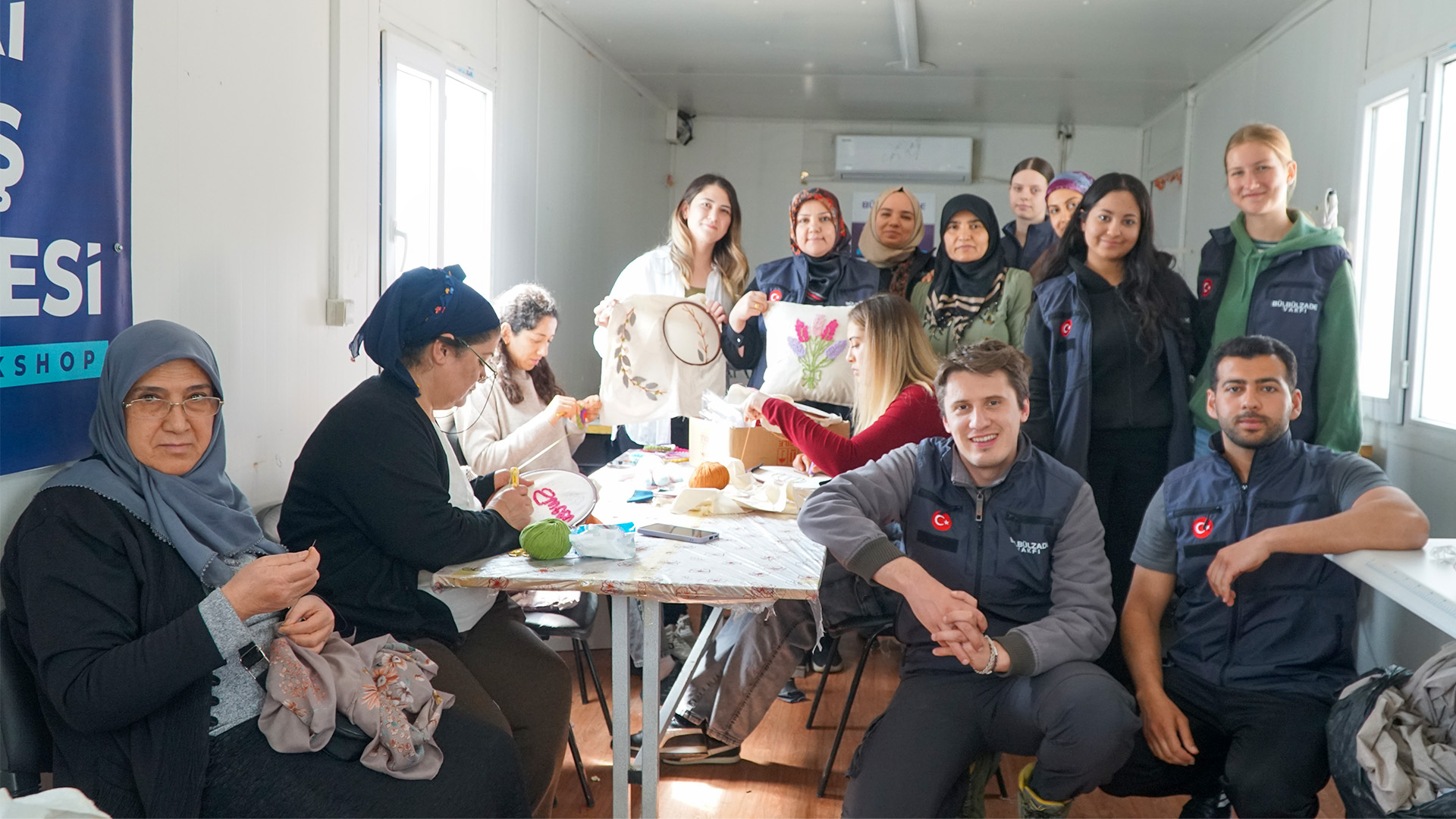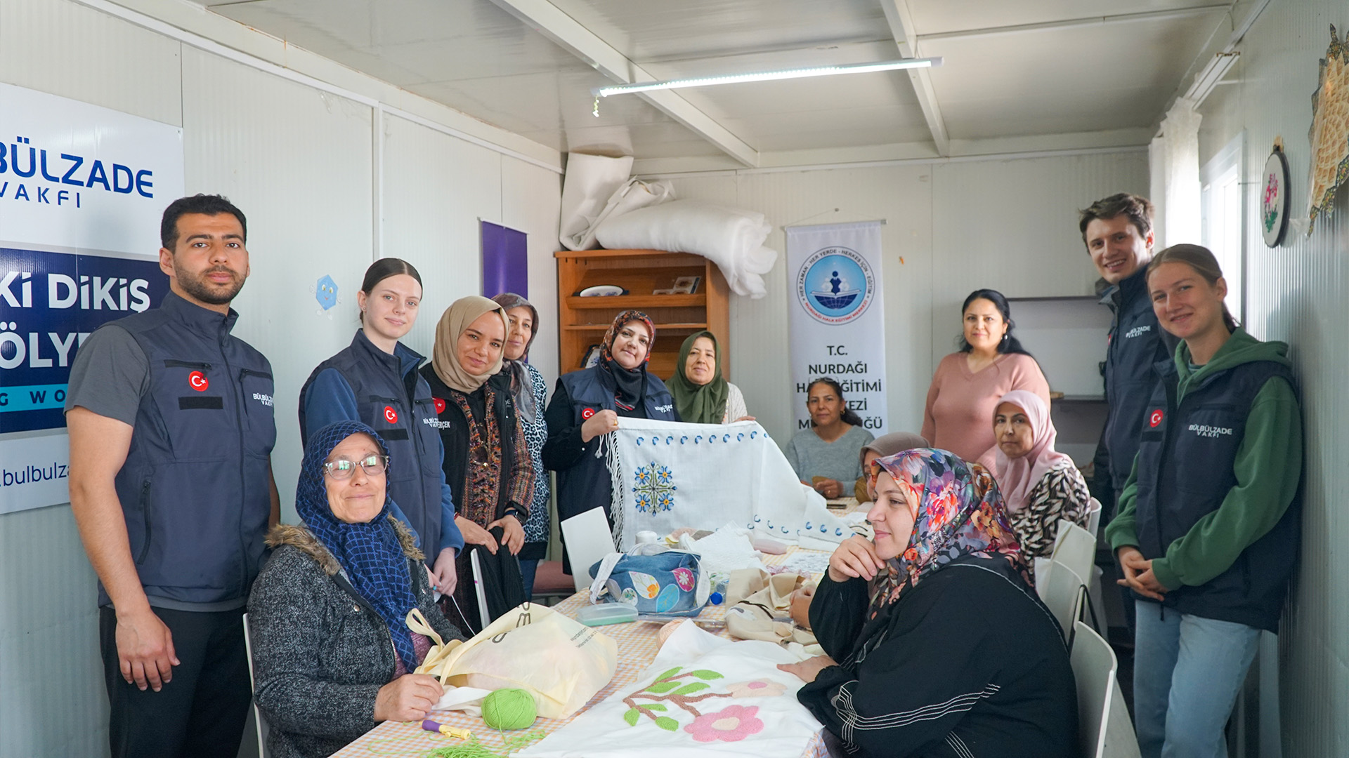 Ziyareti tamamlayan vakıf üyeleri ve ESC gönüllüleri, vakit kaybetmeden bölgedeki üretimin kalbi olan İslahiye Biçki Dikiş Atölyesi’ne geçti. Gönüllü ekip, merkezde devam eden üretimin kesintisiz sürmesi için büyük bir titizlikle temin edilen kumaş toplarını ve çeşitli teknik dikiş malzemelerini araçlardan indirerek atölyeye taşıdı. Malzemelerin teslimi sırasında atölyede eğitim alan kursiyerlerle bir araya gelen gönüllüler, kadınların üretim sürecine dahil olmasının bölge ekonomisi için kritik bir rol oynadığını ifade etti. Ekip üyeleri, yerel üretimi güçlendiren ve sosyal kalkınmayı destekleyen bu tür projelerin her zaman en ön safında yer alacaklarını belirterek çalışmalarında kursiyerlere başarılar diledi.