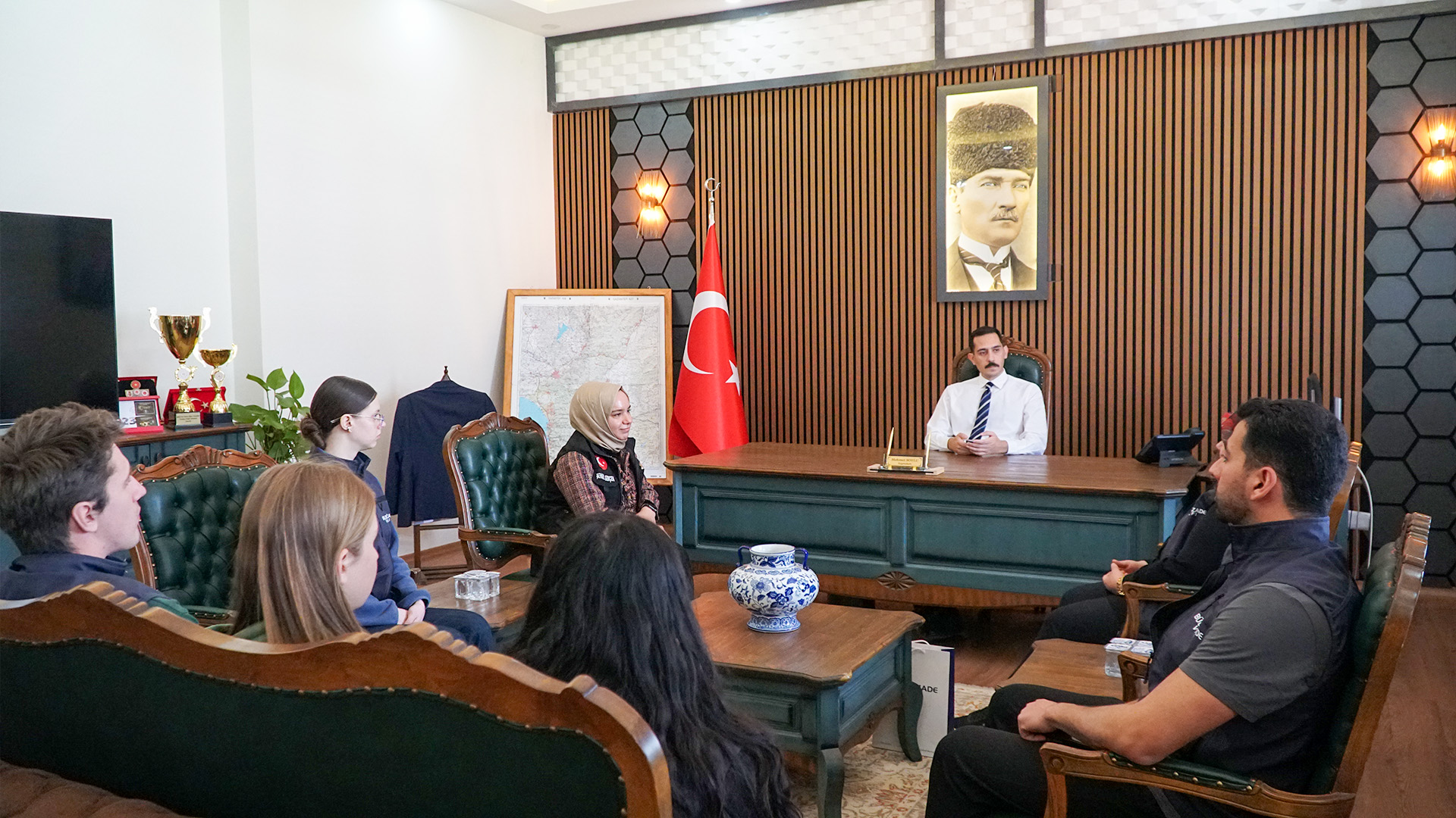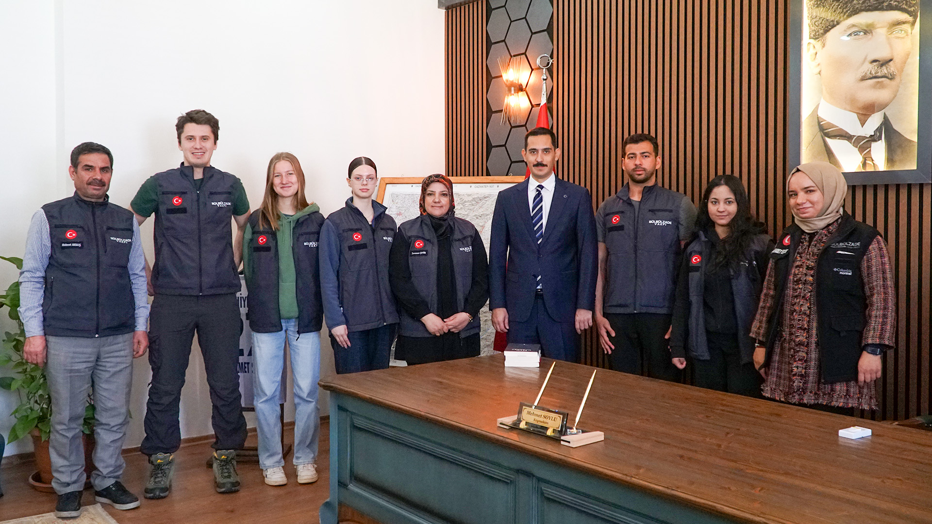 Bülbülzade Vakfı bünyesinde faaliyet gösteren Deprem Bölgesi Birimi, Göç Birimi ve ESC gönüllülerinden oluşan heyet, İslahiye Kaymakamı Mehmet Soylu’ya nezaket ziyareti gerçekleştirdi. Heyet üyeleri görüşme sırasında vakfın bölgede yürüttüğü projeleri, sosyal uyum faaliyetlerini ve deprem sonrası sürdürdüğü kapsamlı rehabilitasyon çalışmalarını detaylarıyla anlattı. Vakıf temsilcileri, sahadaki güncel ihtiyaçları ve gelecek dönemde planladıkları projeleri paylaşırken İslahiye özelinde yürütülecek ortak çalışmaların önemine değindi. Kaymakam Soylu, gönüllülerin sergilediği özverili gayretin bölge halkı için taşıdığı değeri vurgulayarak ziyaretten duyduğu memnuniyeti paylaştı.
