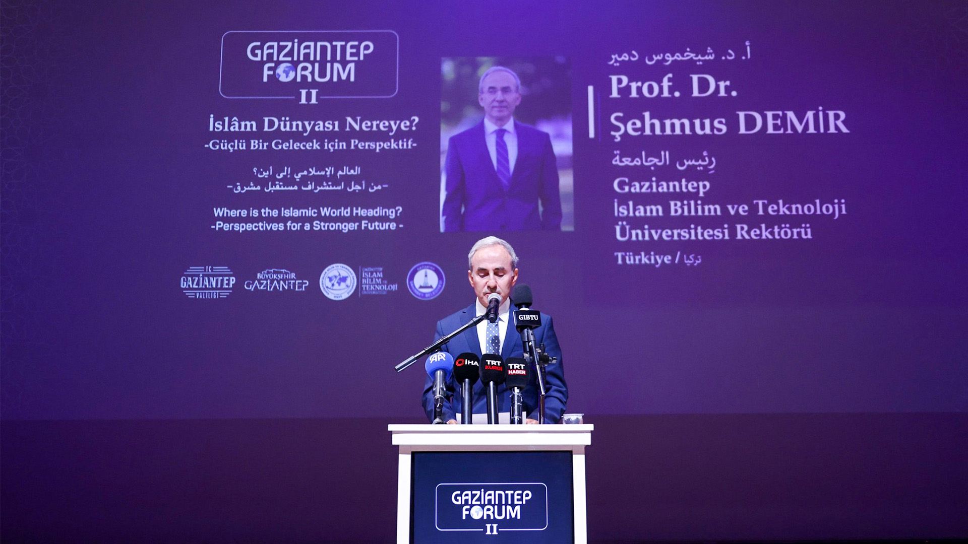 Şahinbey Kongre ve Sanat Merkezi’nde düzenlenen forumda, İslâm dünyasının güncel sorunları, gelecek vizyonu ve küresel ölçekteki rolü ele alındı. Etkinliğe, Gaziantep Valisi Kemal Çeber, Büyükşehir Belediye Başkan Vekili Zehra Ünal, Şahinbey Belediye Başkanı Mehmet Tahmazoğlu, GİBTÜ Rektörü Prof. Dr. Şehmus Demir, Diyanet İşleri Başkanı Prof. Dr. Safi Arpaguş, eski Kamu Başdenetçisi Şeref Malkoç, Türkiye Ulusal Ajans Başkanı İlker Astarcı, TÜGVA Genel Başkanı İbrahim Beşinci ile dünyanın farklı ülkelerinden akademisyenler, araştırmacılar, sivil toplum temsilcileri ve çeşitli paydaşlar katılım sağladı. GİBTÜ Öğretim Üyesi Prof. Dr. Mahsum Aytepe’nin açılış konuşmasıyla başlayan programda, Ortadoğu Medya İletişim Merkezi tarafından hazırlanan “Gaziantep Forum II Tanıtım Filmi” gösterildi.