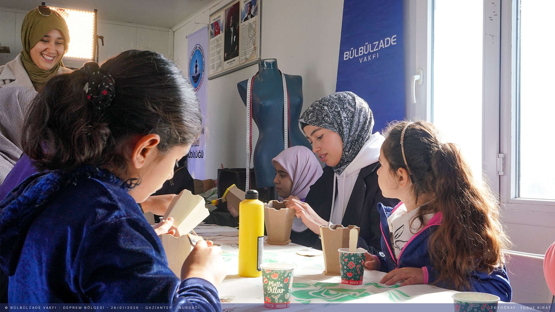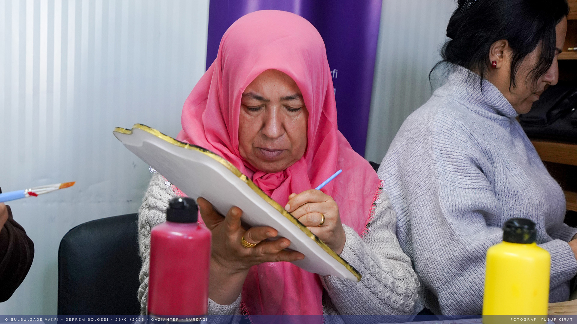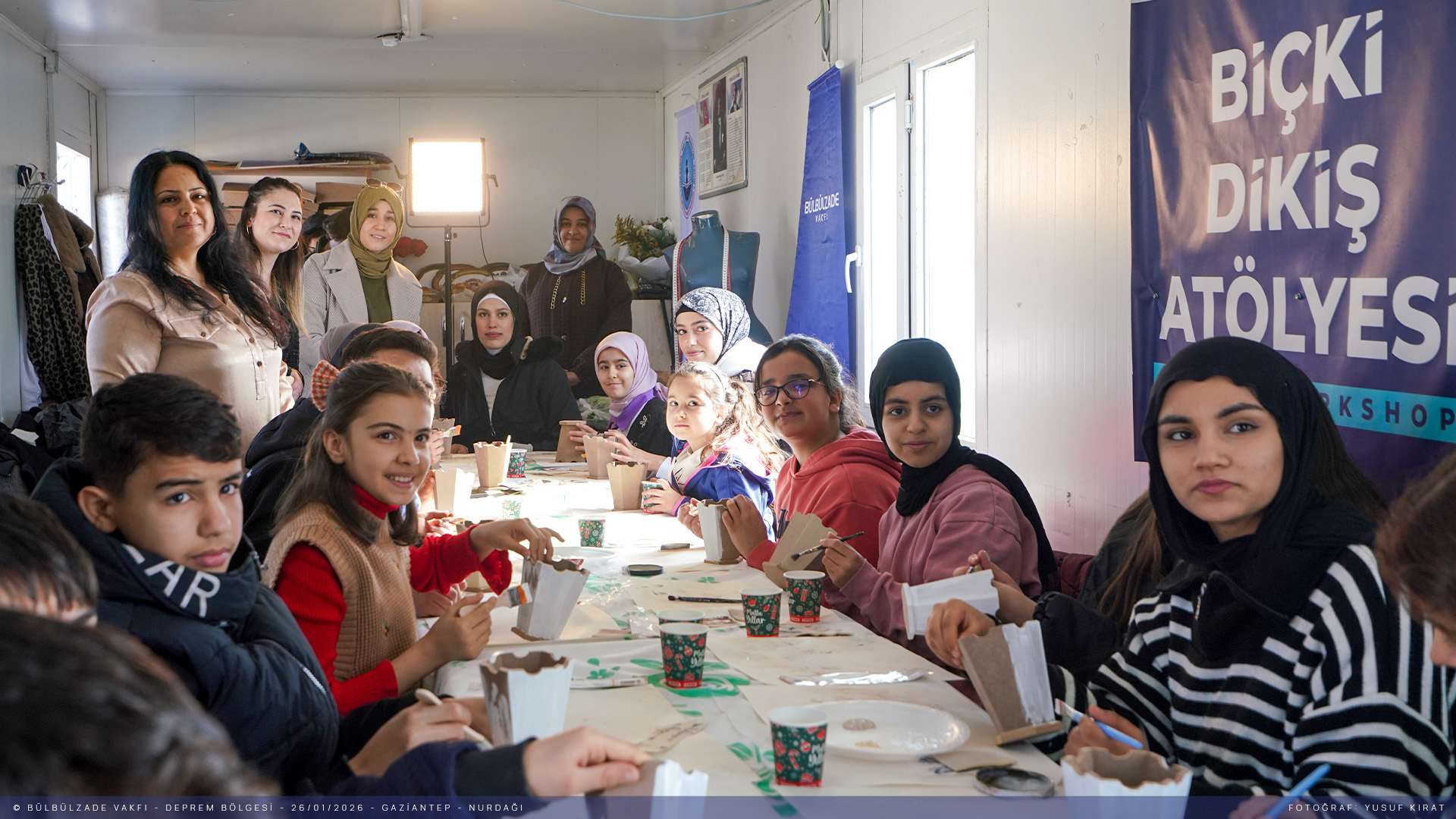 Depremin ilk gününden beri İslahiye ve Nurdağı’nda depremden etkilenen kardeşlerimizi bir an olsun yalnız bırakmadık. Üç yıldır sahadayız ve hayatın devam etmesi için var gücümüzle çalışıyoruz. Bugüne dek çok sayıda proje ve etkinliğe ev sahipliği yaptığımız ilçelerde Biçki Dikiş Kurslarımız hizmet vermeye devam ediyor. Depremzedelerin sosyal ve psikolojik rehabilitasyonuna destek olmak amacıyla anlamlı projelere imza atmaya devam ediyoruz. Bugün de "Renklerle Umuda Dokunuyoruz" sloganıyla Nurdağı’nda depremin izlerini silmek üzere ahşap boyama atölyesi düzenledik. Sanatın iyileştirici gücüyle bir araya geldik.