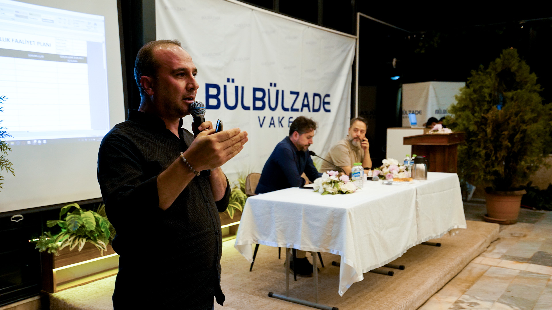 Program, moderatörlerin açıklamaları ve selamlamaları ile başladı. Vakıf esnaf birimi üyesi Nurettin Yener, yeni dönem çalışmalarının kayıt altına alınması, formlara işlenmesi ve yıllık faaliyet planı hazırlıkları hakkında bilgiler verdi. Ardından vakıf başkanı Turgay Aldemir, yapılan aktif çalışmalar ve işleyişler hakkında bilgilendirme yaptı.