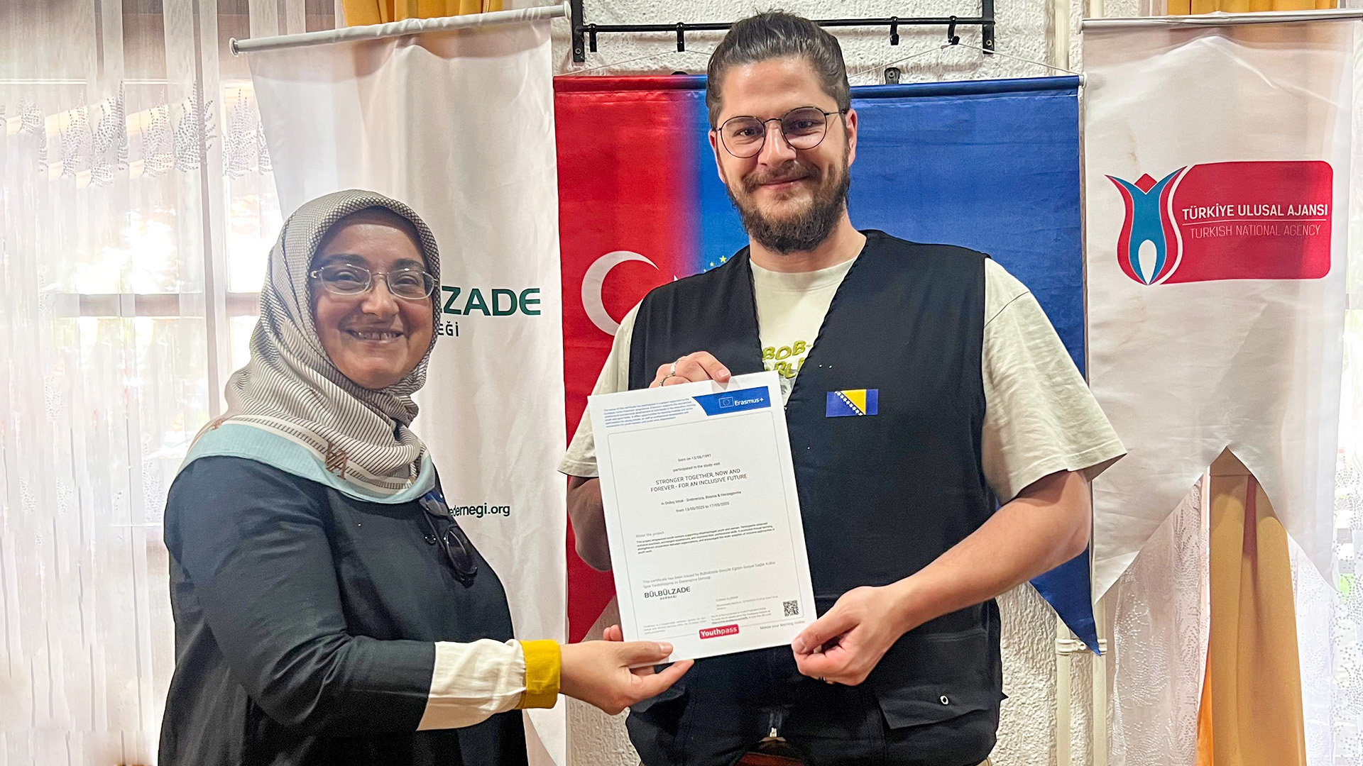 Bülbülzade Derneği tarafından yürütülen Erasmus+ KA151 Gençlik Çalışanları Hareketliliği “Birlikte Daha Güçlüyüz, Şimdi ve Daima- Kapsayıcı Bir Gelecek İçin” projesi kapsamında gönüllülerimiz, Bosna Hersek’te faaliyet gösteren IFS EMMAUS’a bir çalışma ziyareti düzenledi. Gaziantep’ten Mozaik Derneği, AKADDER, Semti İbrahimli Derneği’nin de ortağı olduğu projenin hareketliliği 13-17 Mayıs 2025 tarihlerinde Bosna Hersek’in Srebrenitsa ve Doboj şehirlerinde gerçekleştirildi.